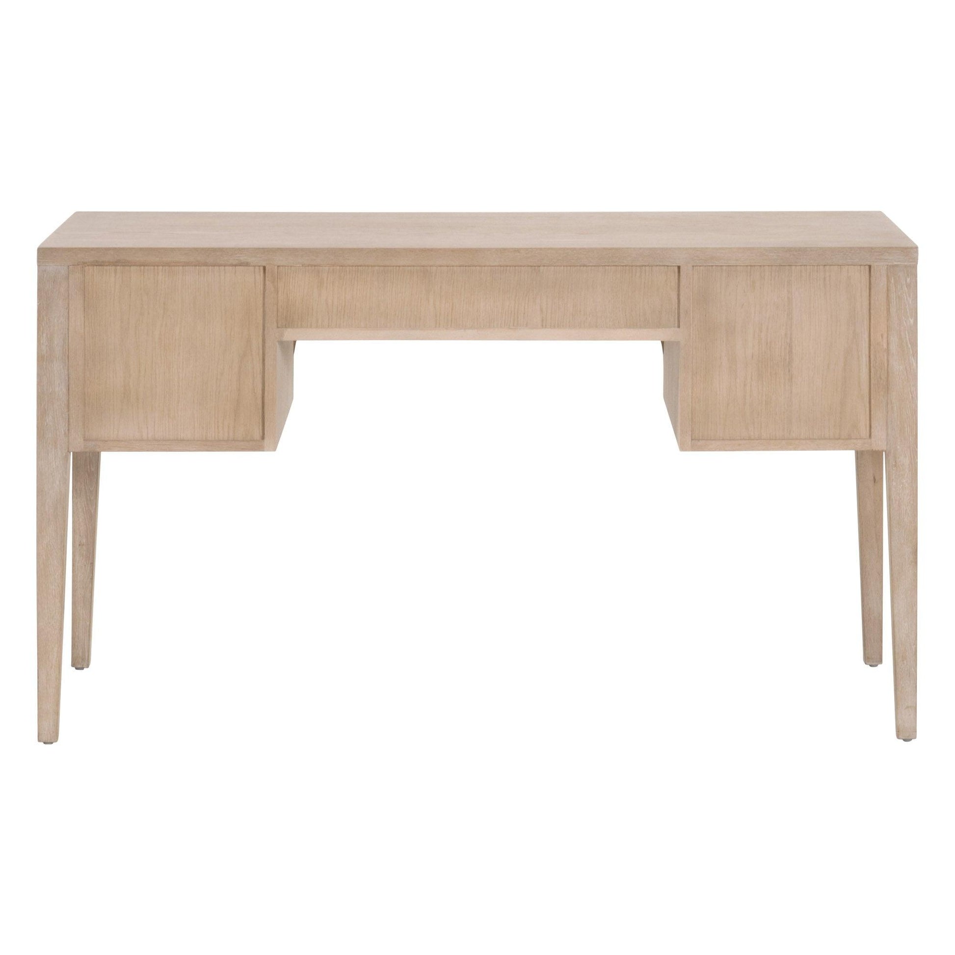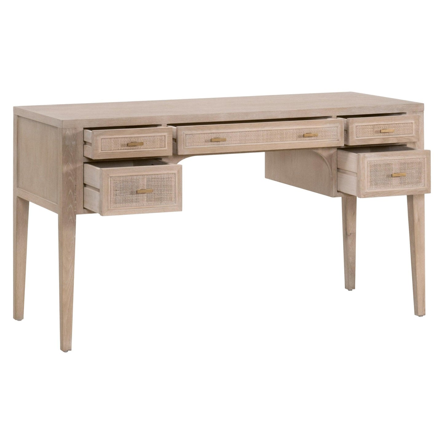Cane Desk Smoke Gray Oak Wood and Cane Features: