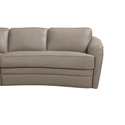 The Capri Sectional, available in Sorrento Camel and Sorrento Pewter finishes, is designed to elevate your living space with its luxurious craftsmanship and modern appeal. Made with high-quality Italian leather, this sectional combines elegance and durability. The Sorrento Camel finish offers a warm, rich tone, while the Sorrento Pewter finish complements a variety of decor styles with its sophisticated neutral hue. The L-shaped design with curved seating ensures exceptional comfort, making it perfect for family gatherings or cozy evenings. Its plush cushions, padded armrests, and foam with fiber overlay seat construction provide a relaxing experience, while the spacious seating arrangement offers plenty of room for everyone.