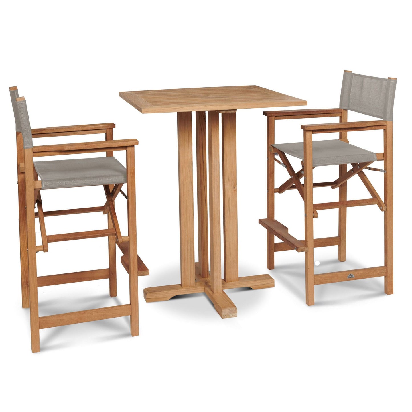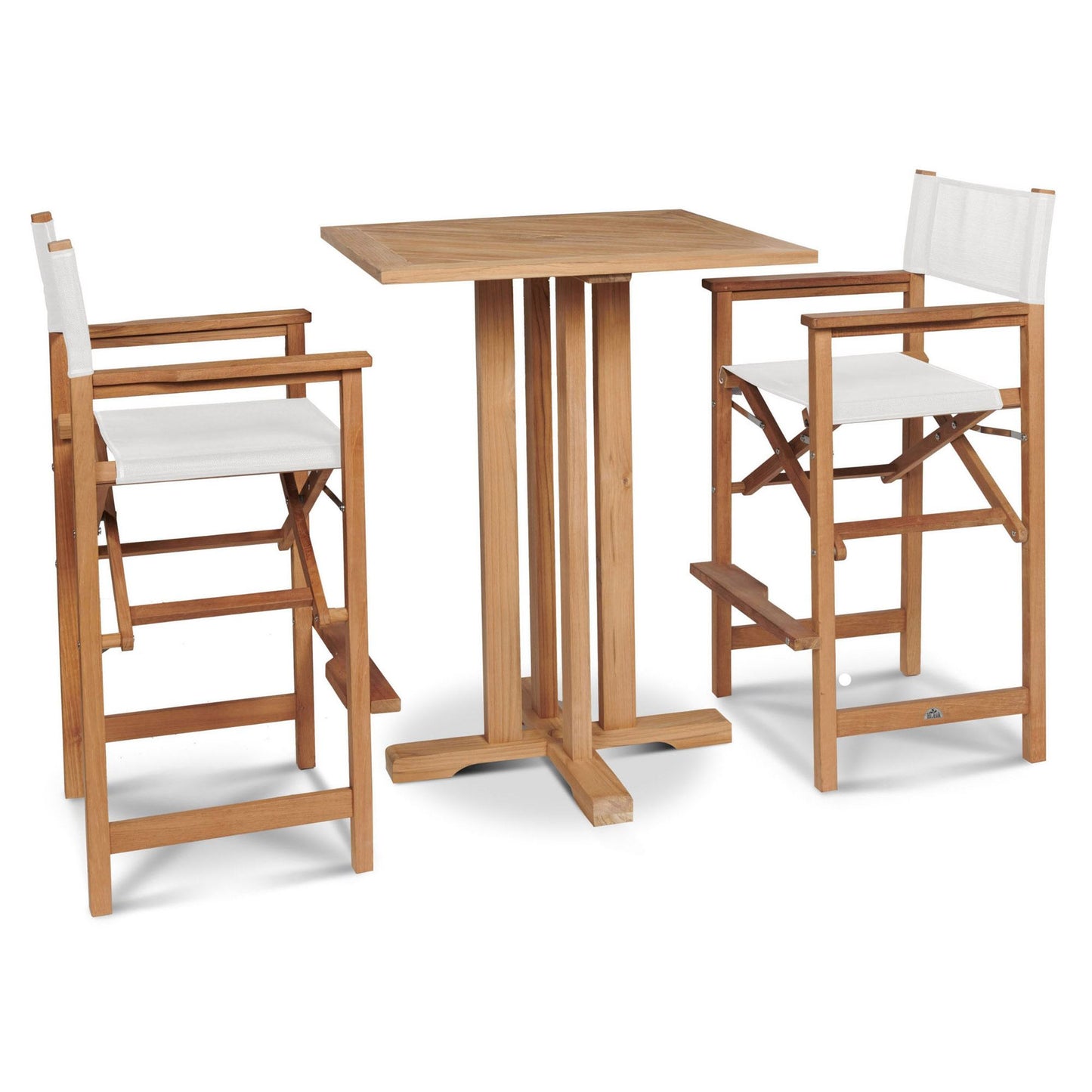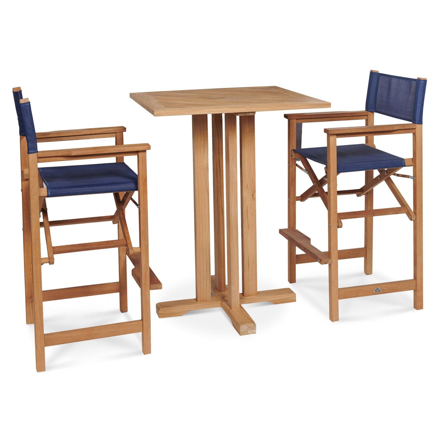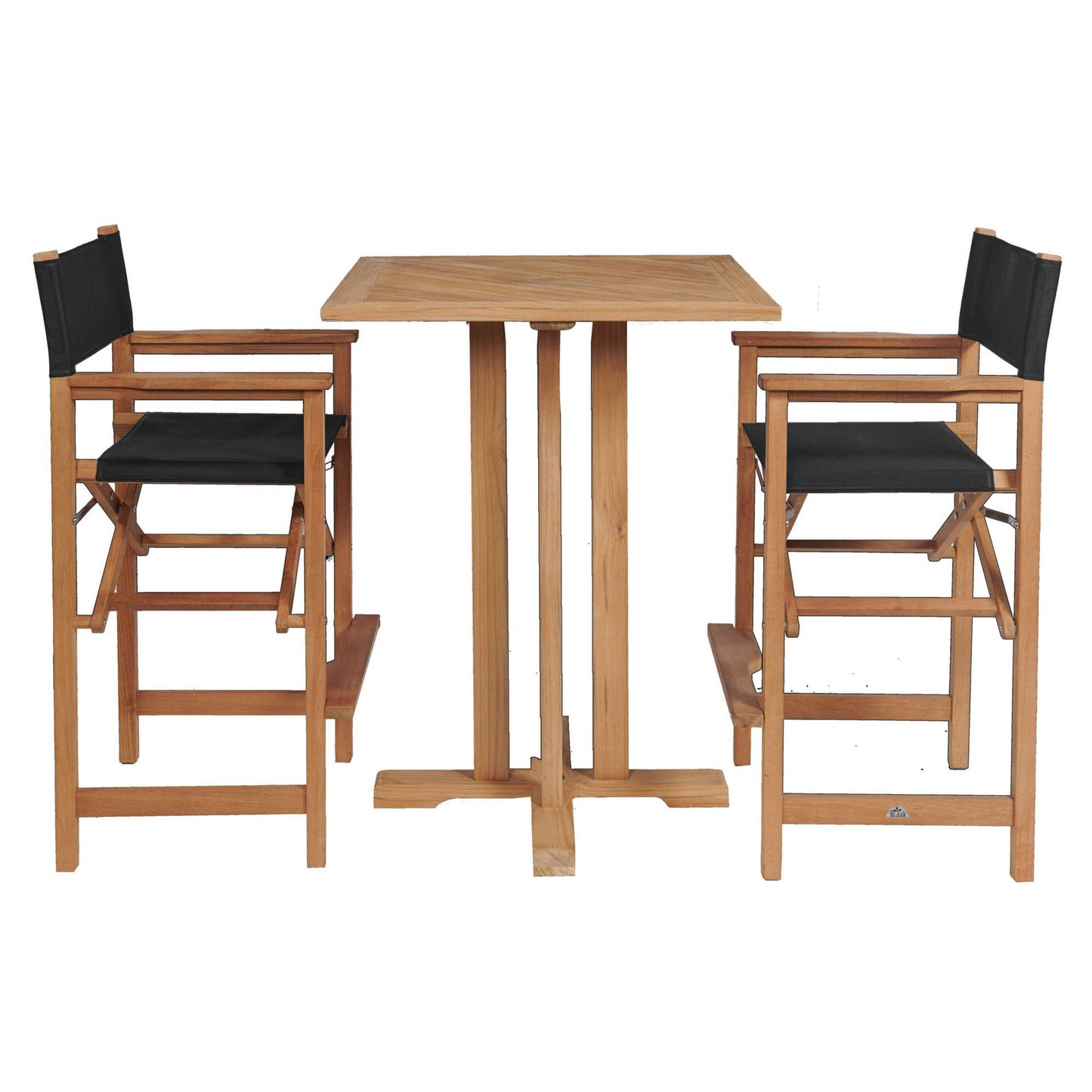 Captain 3-Piece Square Teak Outdoor Bar Height Dining Set Features:
