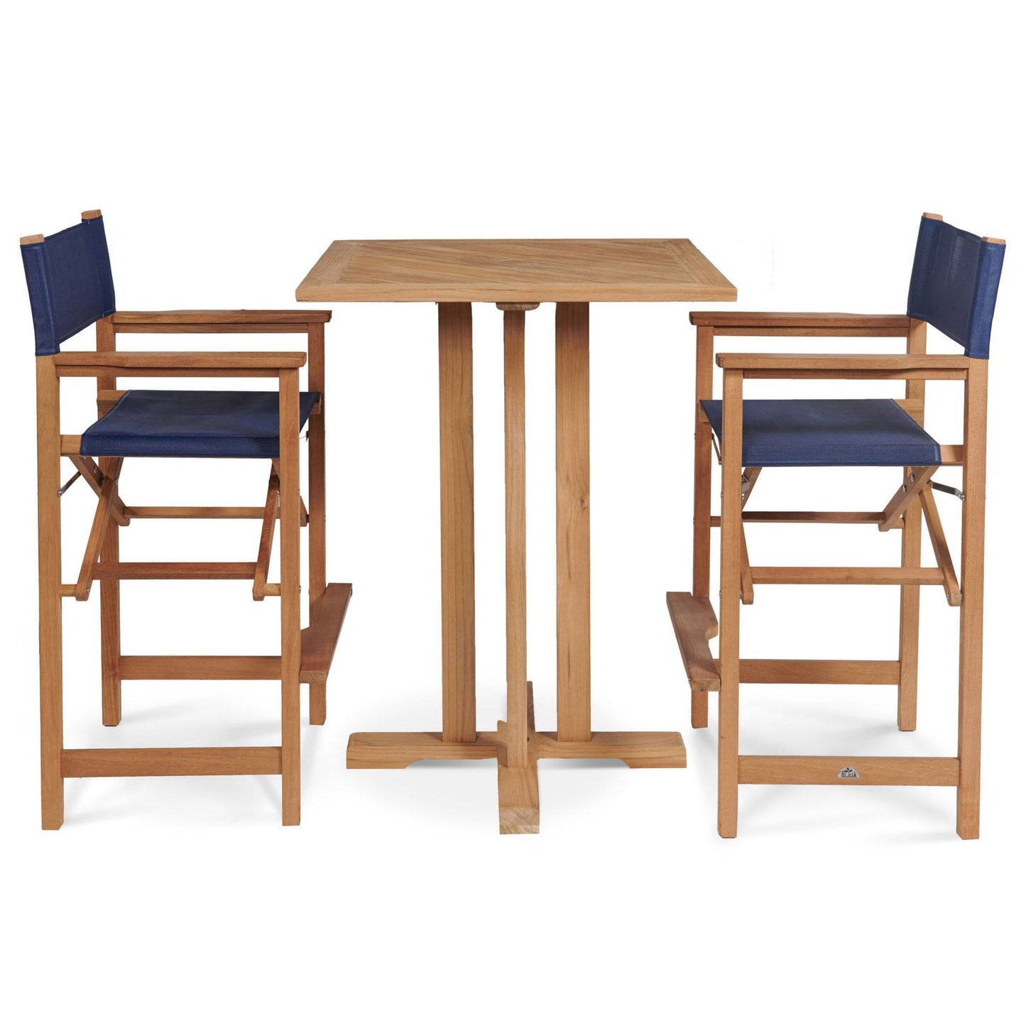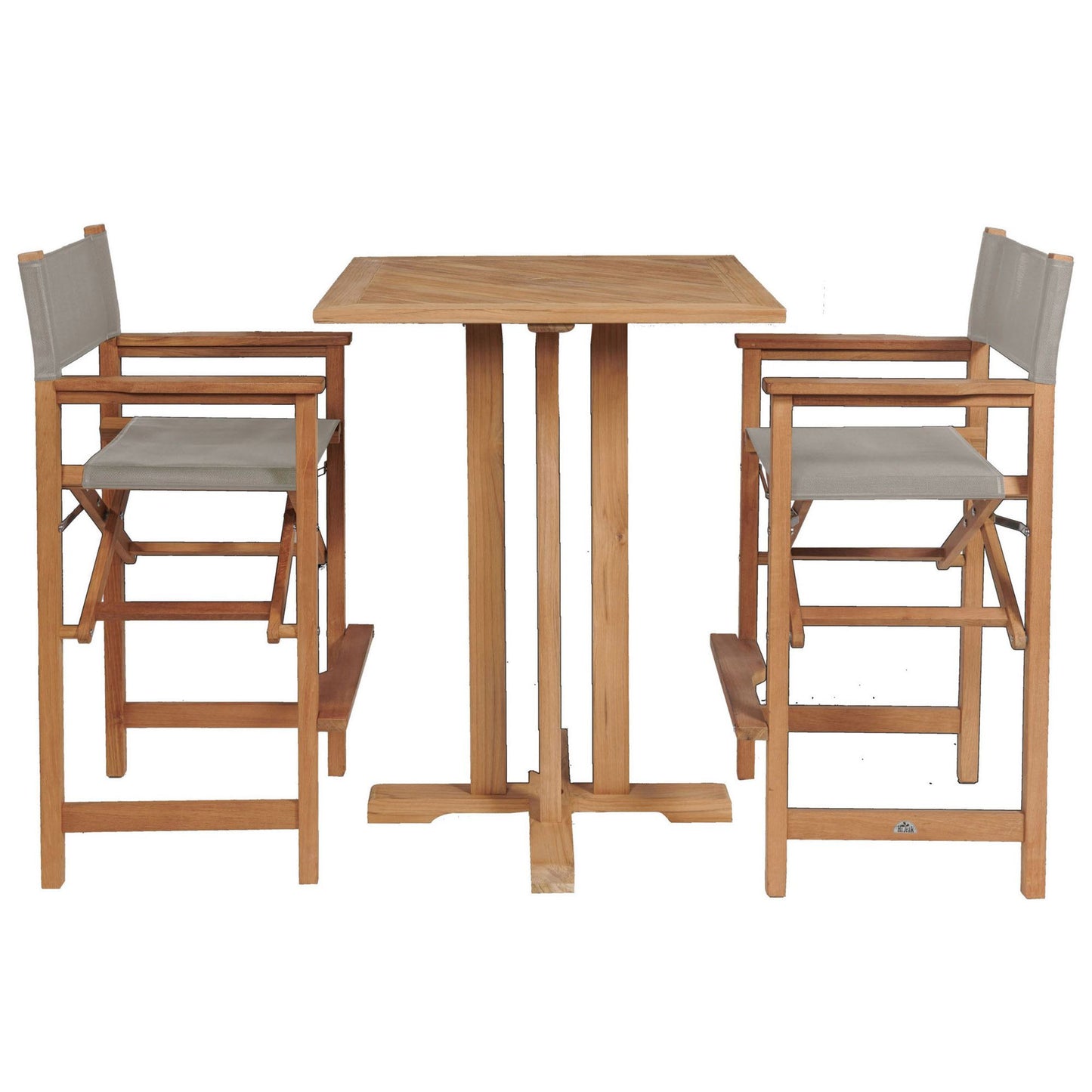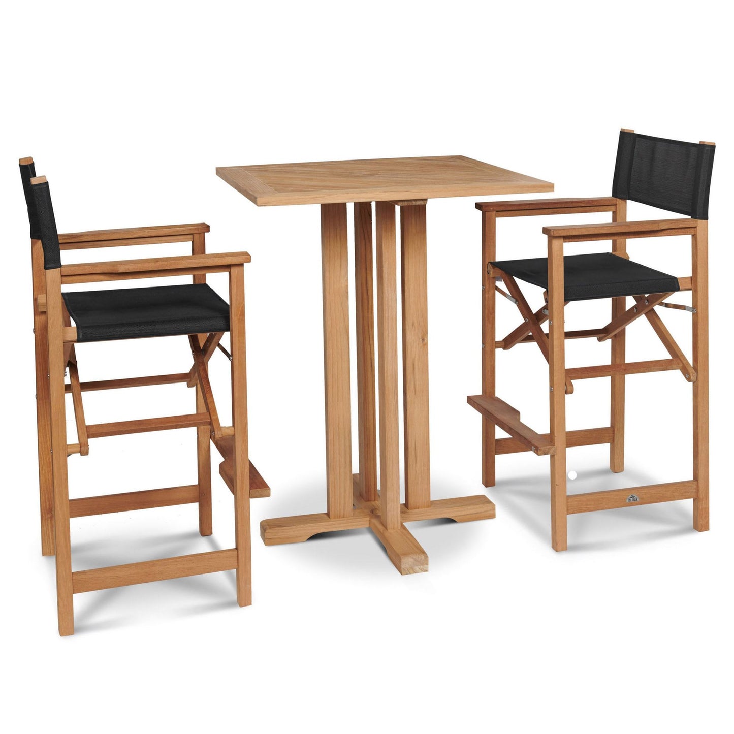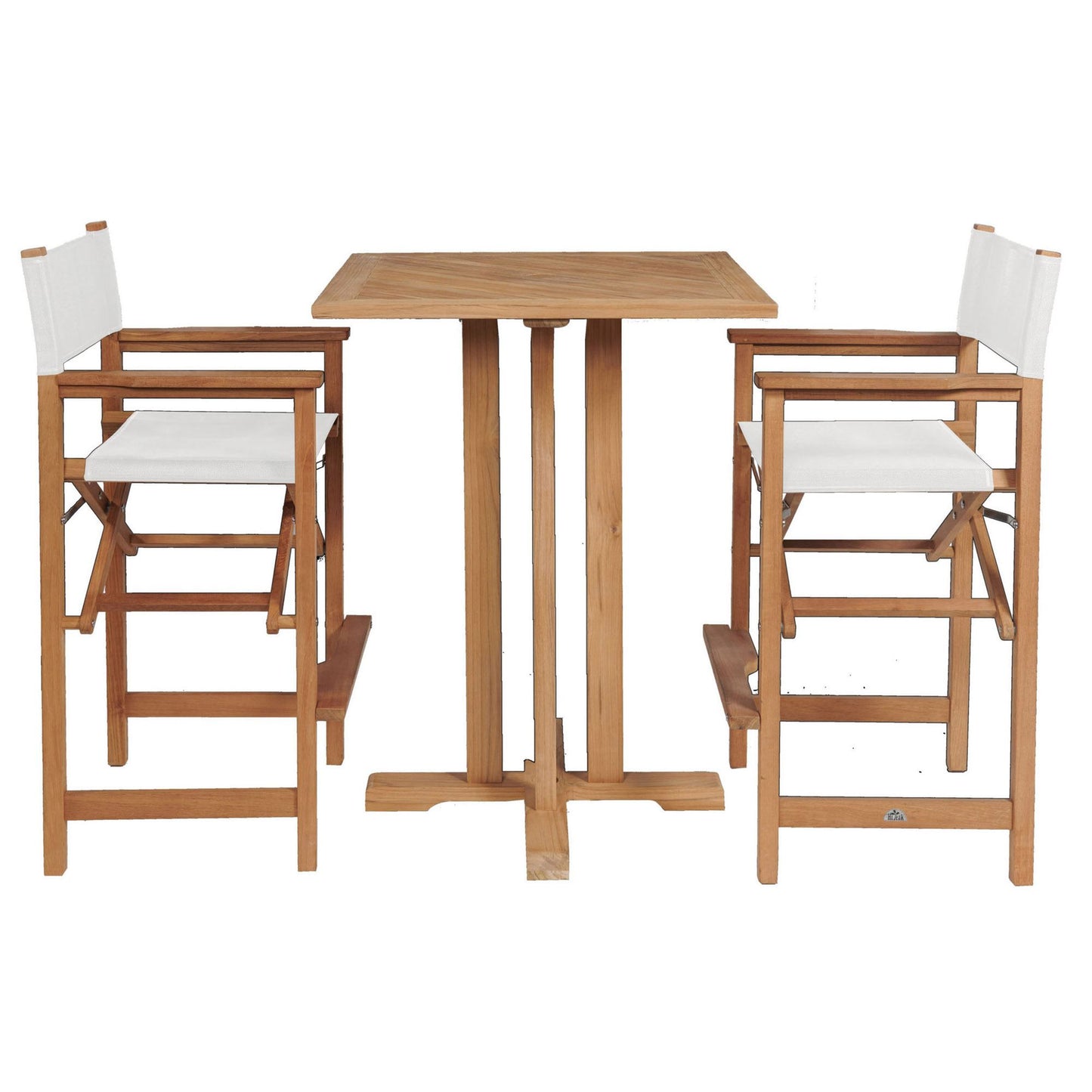Captain 3-Piece Square Teak Outdoor Bar Height Dining Set Features: