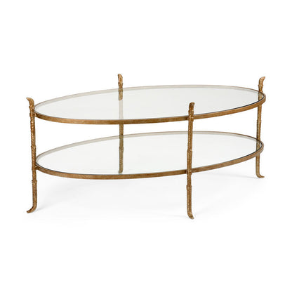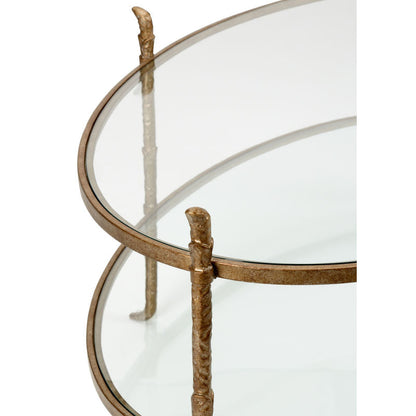The Carley Cocktail Table brings a touch of elegance to any living space. With its sleek bronze finish and clear glass top, it effortlessly combines style with functionality. This cocktail table is crafted from sturdy iron, ensuring durability and stability. The gold color adds a warm and inviting tone, making it a perfect centerpiece for gatherings or a quiet evening at home. Its design complements various interior styles, from modern chic to classic sophistication, making it a versatile addition to your home. Part of the esteemed Wildwood collection, this table offers a spacious surface for drinks, books, or decorative items.
