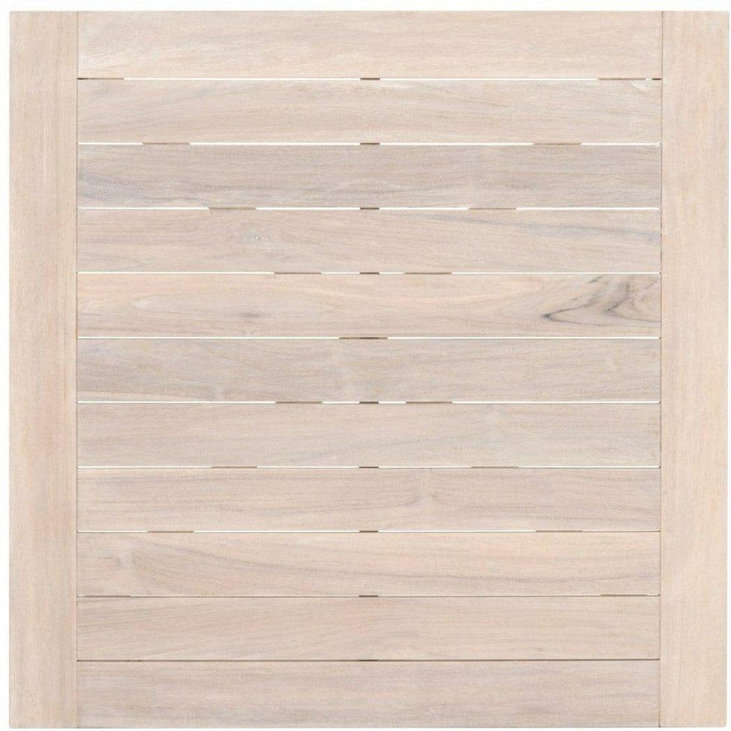 Crafted from premium gray teak wood, our Square Carmel Outdoor 42" Counter Table exudes a luxurious and exclusive vibe. This pub-style table features a transitional design that seamlessly fits into both indoor and outdoor settings. The natural oils in the wood make it perfect for outdoor use, and over time, the teak will develop a beautiful silver tone. With a slat-style design, this dining table can comfortably seat up to 4 people and elevate your outdoor dining experience. From our Woven Collection, the "Gray Teak" finish adds an elegant touch and expedites the natural weathering process for a one-of-a-kind appearance. Please note that, as with all teak wood, the aging process may result in changes in color and texture, including marks and cracks, which add to the unique charm of the Gray Teak finish.
