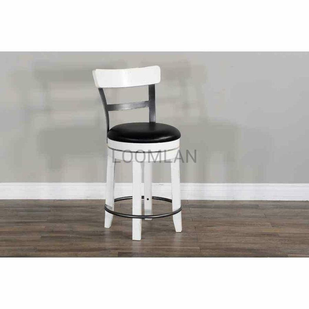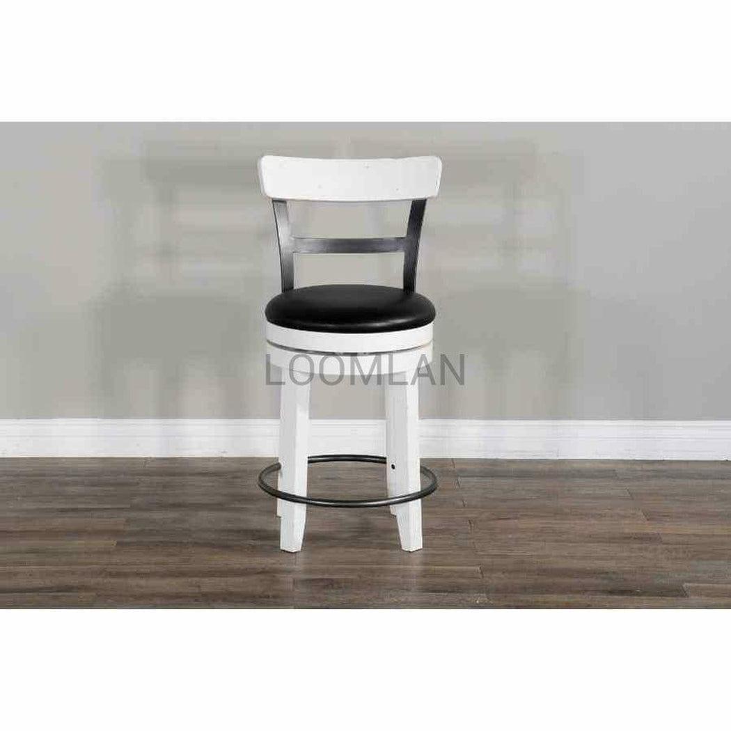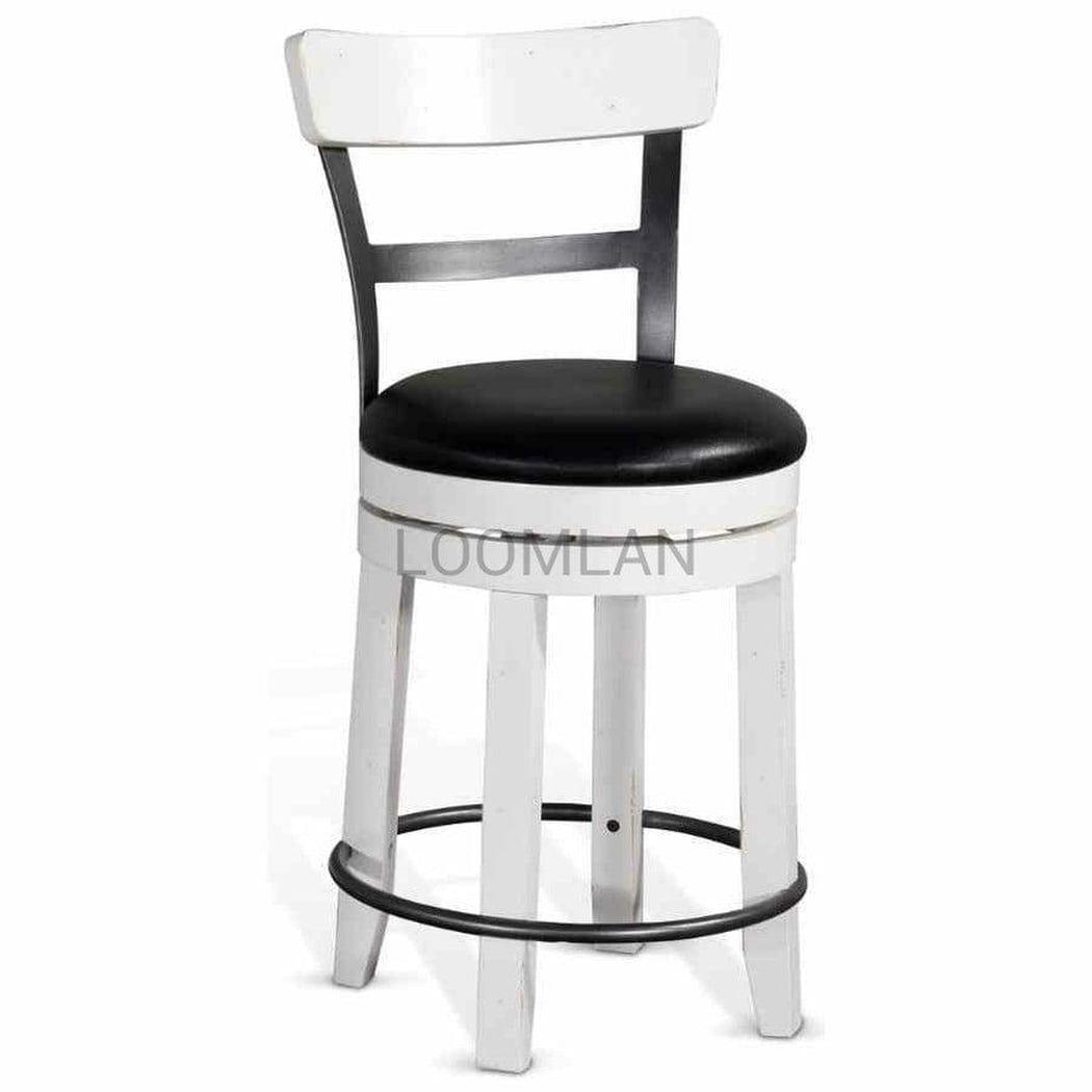 Two Tone Distressed White Swivel Counter Height Chair Black Leather Seat Features: