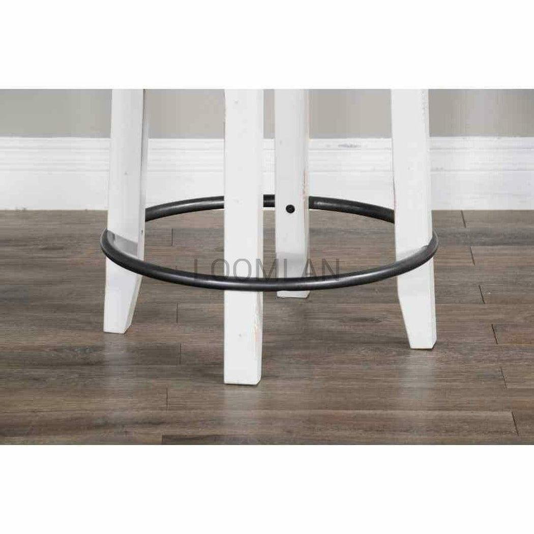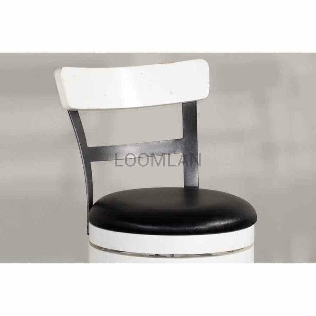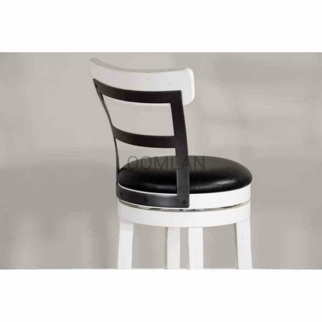 Two Tone Distressed White Swivel Counter Height Chair Black Leather Seat Features: