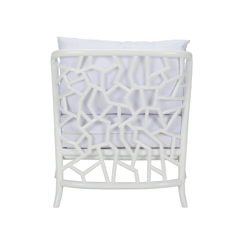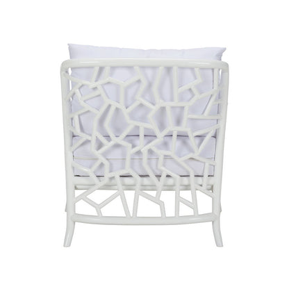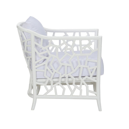 Experience the comfort and style of the Catania Lounge Chair, a stunning piece crafted to enhance any indoor space. Made from high-quality rattan poles, its modern geometric pattern offers a fresh take on a classic material. The open sides and sturdy frame provide a unique aesthetic that invites relaxation and harmony with its surroundings. This chair promises to transform your sunroom or pool house into a tranquil retreat where you can unwind and enjoy peaceful moments. The plush muslin upholstered cushions are designed for comfort, ensuring that every seat feels like a luxurious escape. The soft white and cream tones blend effortlessly with a variety of decor styles, adding a touch of elegance to any room.