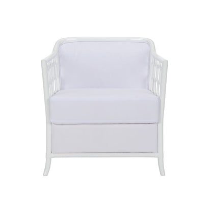 The Cefalu Lounge Chair brings a touch of Mediterranean style to any indoor space with its unique and elegant design. Expertly crafted from rattan pole, this chair features a distinctive honeycomb pattern that adds a touch of sophistication to your decor. The gentle curves of the armrests and the sturdy frame ensure both style and durability, making this chair an ideal choice for sunrooms, pool houses, and seaside getaways. Sit back and relax on the Cefalu's inviting muslin upholstered cushions. The plush seat offers exceptional comfort, allowing you to unwind and soak up the sun in style. The chair's white and cream color palette complements a variety of interiors, bringing a light and airy feel to your space.