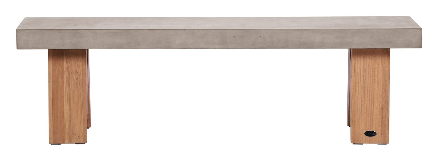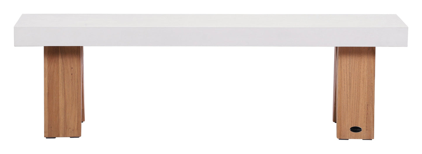 Experience the perfect blend of modern elegance and functionality with this handcrafted bench. Made from lightweight concrete and reclaimed teak, it offers a sophisticated yet minimalist design that enhances both indoor and outdoor spaces. The smooth concrete surface showcases natural imperfections, while the reclaimed teak adds warmth and an organic touch. Available in two stunning finishes—slate grey for a refined, modern look and ebony white for a sleek contrast—each bench exhibits unique color and veining variations, making it a one-of-a-kind statement piece.