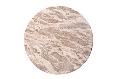 Supported by four hammered antique brass legs, the table’s design is both sturdy and visually appealing. X-shaped support beams add an extra layer of stability and style, ensuring that the table is as functional as it is beautiful. This piece is crafted from high-quality materials, with the smooth, polished marble contrasting elegantly with the textured finish of the brass. The table's harmonious blend of colors and materials makes it a versatile addition to any decor, enhancing the atmosphere of your home.