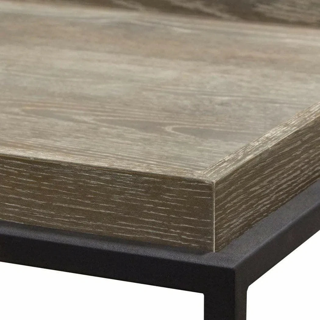 The Lex Tray Edge Rectangular Cocktail Table by Diamond Sofa is sure to enhance any room's decor. With its Rustic Oak finished veneer top set atop the black powder coated metal base, the Lex Table promotes a clean and crisp addition to your living space. Cocktail Table is 52 Inch by 28" Inch by 17 Inch. Take your living space to the next level with the Lex Tray Edge Rectangular Cocktail Table. Its sleek Rustic Oak finish and durable metal base make it a bold and stylish addition to any room. Enjoy the feeling of adventure and sophistication that this table brings to your home.