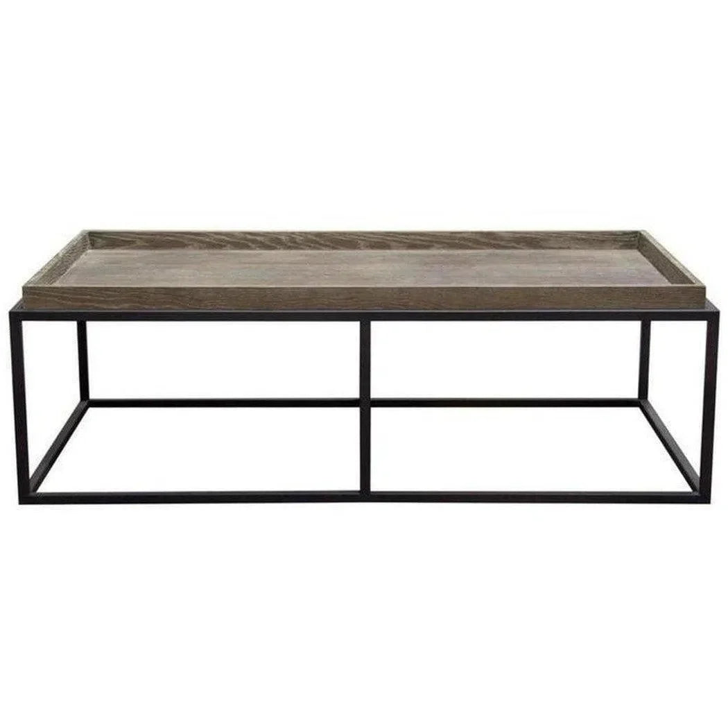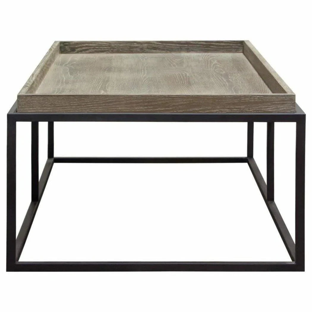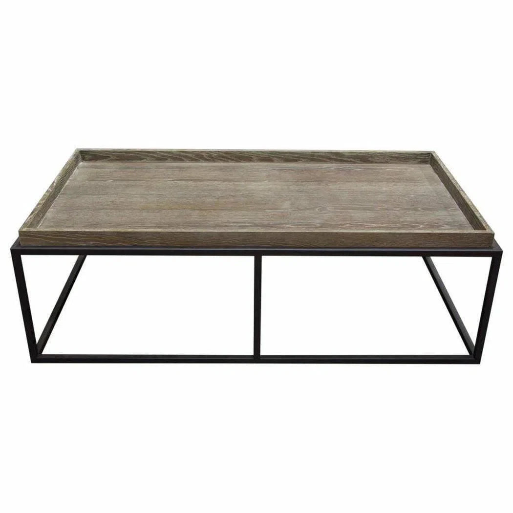 Elevate any room's decor with the Lex Tray Edge Rectangular Cocktail Table. Featuring a sleek Rustic Oak finish and sturdy black metal base, this 52" by 28" by 17" table adds a touch of boldness and style to your living space. Add a sense of adventure to your home with this sophisticated piece!