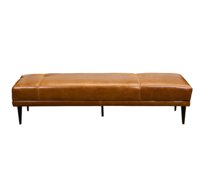 Introducing a blend of modern elegance and comfort with the Convo Bench Ottoman in Yukon Saddle. This piece is perfect for those looking to add a touch of class to any room. With its soft leather upholstery in a rich brown hue, it offers both luxury and durability. The bench is designed with a sleek, tufted top, creating a comfortable seating option that is both stylish and inviting. Supported by sturdy metal legs, this ottoman bench brings a minimalist charm to your home, easily complementing a variety of decor styles.