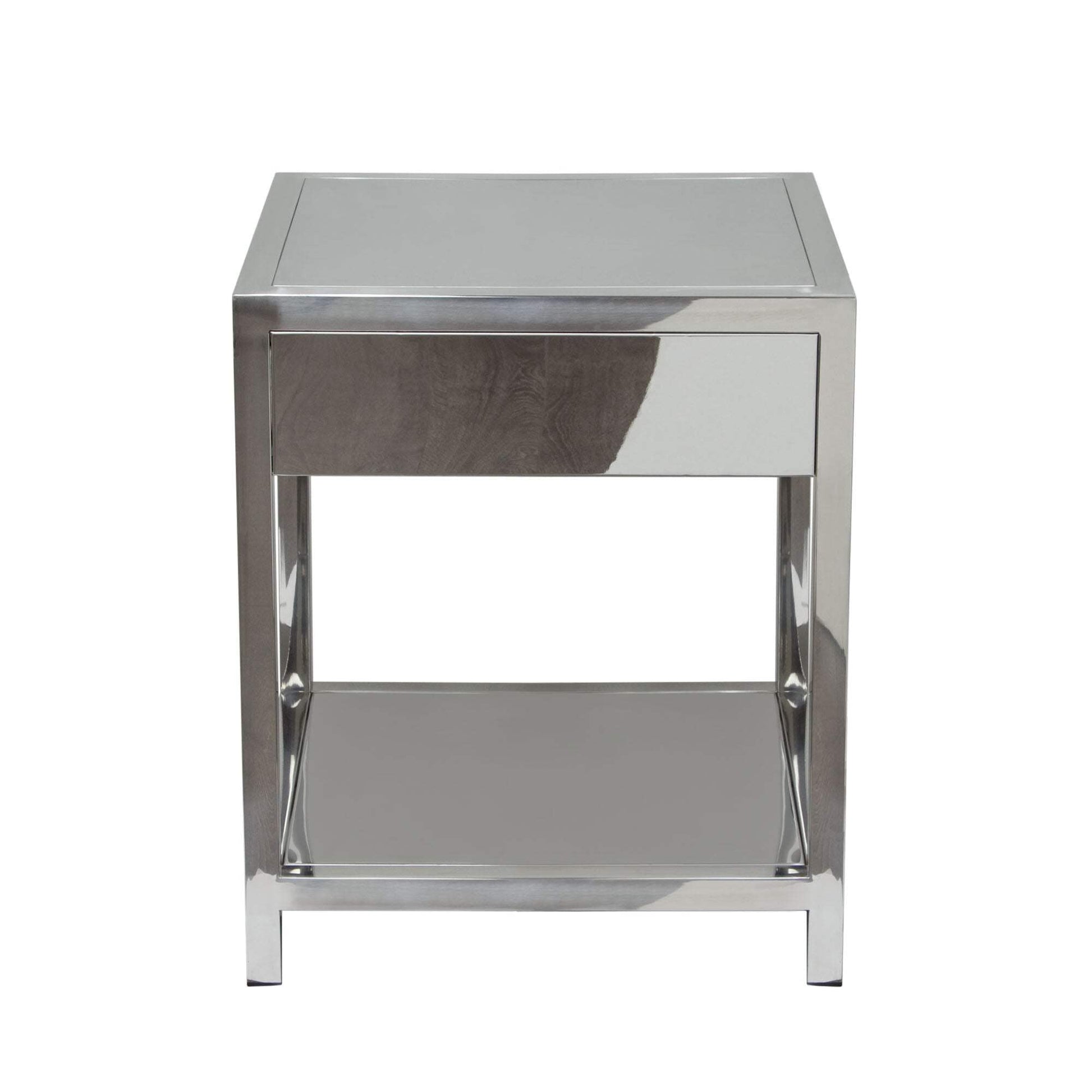 The Corleo 1-Drawer Accent Table is an elegant piece from the Diamond Sofa Stainless Steel Collection. Crafted with meticulous attention to detail, it boasts an Artisan quality polished stainless steel finish that shines with sophistication. This versatile table offers not only style but also function, making it a perfect addition to any room. Whether placed in the living room or used as a nightstand, its sleek design fits seamlessly into various decors.