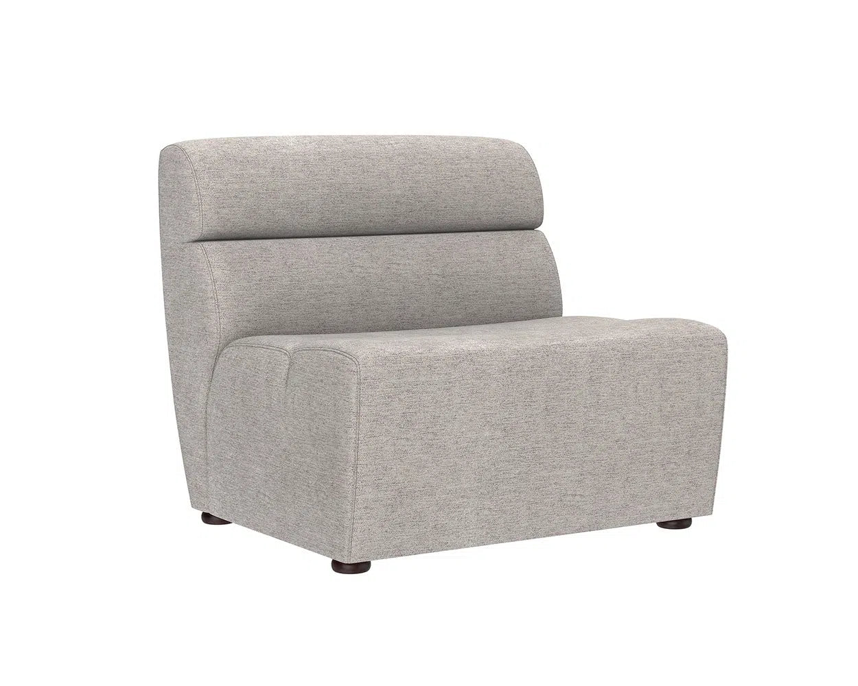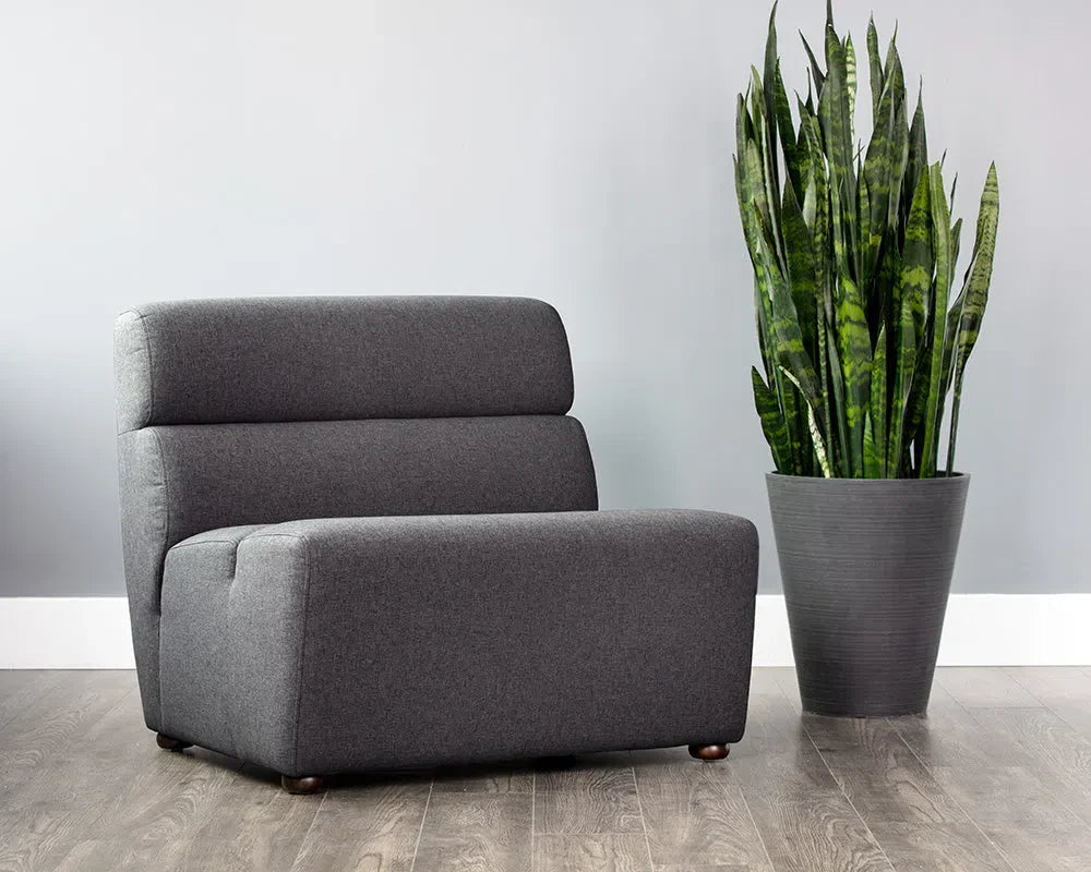 This modular armless chair invites modern creativity and versatility. It can be used individually or combined with the coordinating Cornell corner chair and ottoman sectional pieces to create a custom arrangement. Suitable for both large and small living, lounge, and lobby spaces, this chair is stocked in Polo Club Kohl Grey and Polo Club Stone performance fabric. The performance fabric is moisture-repellent, durable, and easy to clean. Also available as part of a sectional set. Materials: Fabric, Wood Colors: Polo Club Kohl Grey; Polo Club Stone Dimensions (in): 34 W x 34 D x 31 H Weights (lb): 40 Solid wood and plywood frame 94% Polyester, 6% Nylon Due to various screen settings the color of the item may look slightly different in person from what you see on your screen. We try to make sure that the image you see is as accurate as possible.