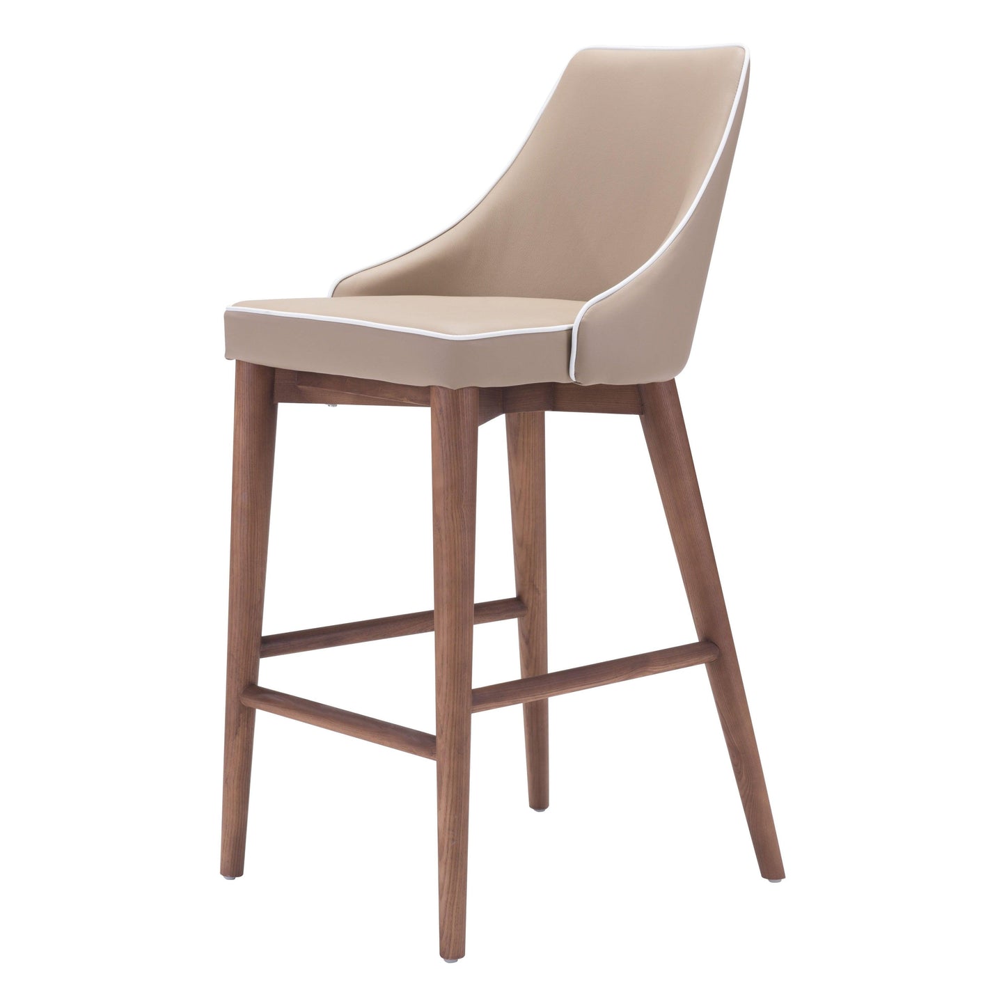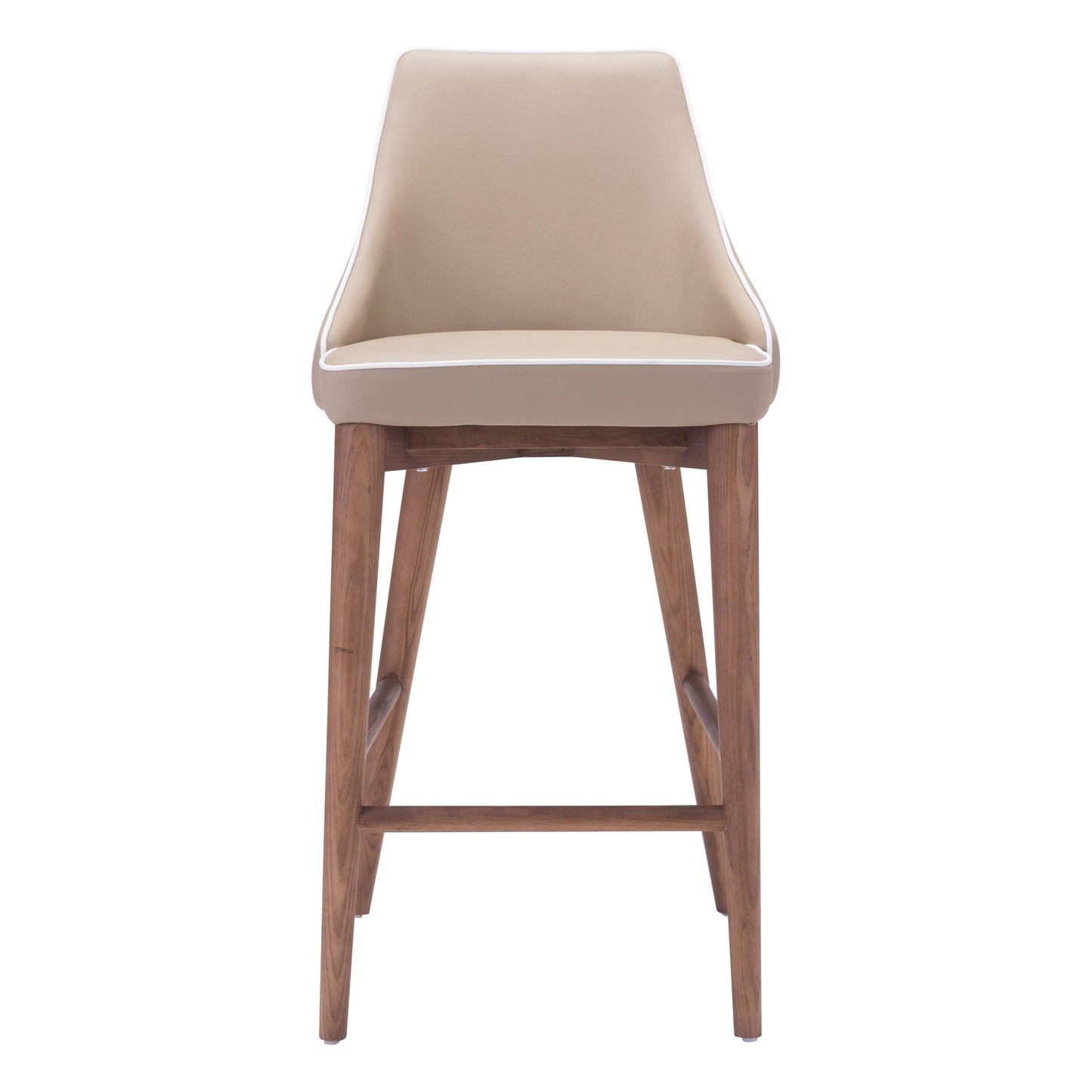 Add a touch of sophistication to your counter with the Moor Counter Chair. Featuring a slim wing back style and plush seat with contrasting accent trim, this chair combines elegance with comfort. The sturdy all wood base and footrest in a warm walnut finish provide reliable support. Made from 100% polyurethane, it’s available in beige or dark Grey with white trim. Assembly is simple with provided tools, and the chair supports up to 250 lbs.