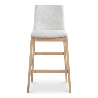 The Deco Oak Barstool blends natural beauty with modern comfort, making it a perfect addition to any home or business. Available in two elegant upholstery options—White PVC Vegan Leather and Light Grey Polyester—this barstool features a solid oak frame that offers both stability and warmth. Its sleek design allows it to seamlessly fit into both formal and casual settings. The PVC white upholstery is easy to clean, while the light grey polyester offers a practical and stylish solution for everyday use. Designed for convenience, the Deco Oak Barstool requires no assembly, arriving ready to use right out of the box. The metal reinforcement behind the stretcher bar ensures added durability, making it a great choice for high-traffic areas.