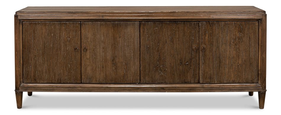The Deco Wall Sideboard is a charming addition to any room with its elegant yet simple design. Crafted from solid Elm wood, this sideboard offers durability and a rustic finish that enhances its natural beauty. Its rectangular shape is complemented by round tapered legs and front corners, giving it a touch of sophistication with a minimalist flair. The brown color blends seamlessly into various interior styles, particularly aligning well with French Country decor. The sideboard's simple lines and details add to its timeless appeal.