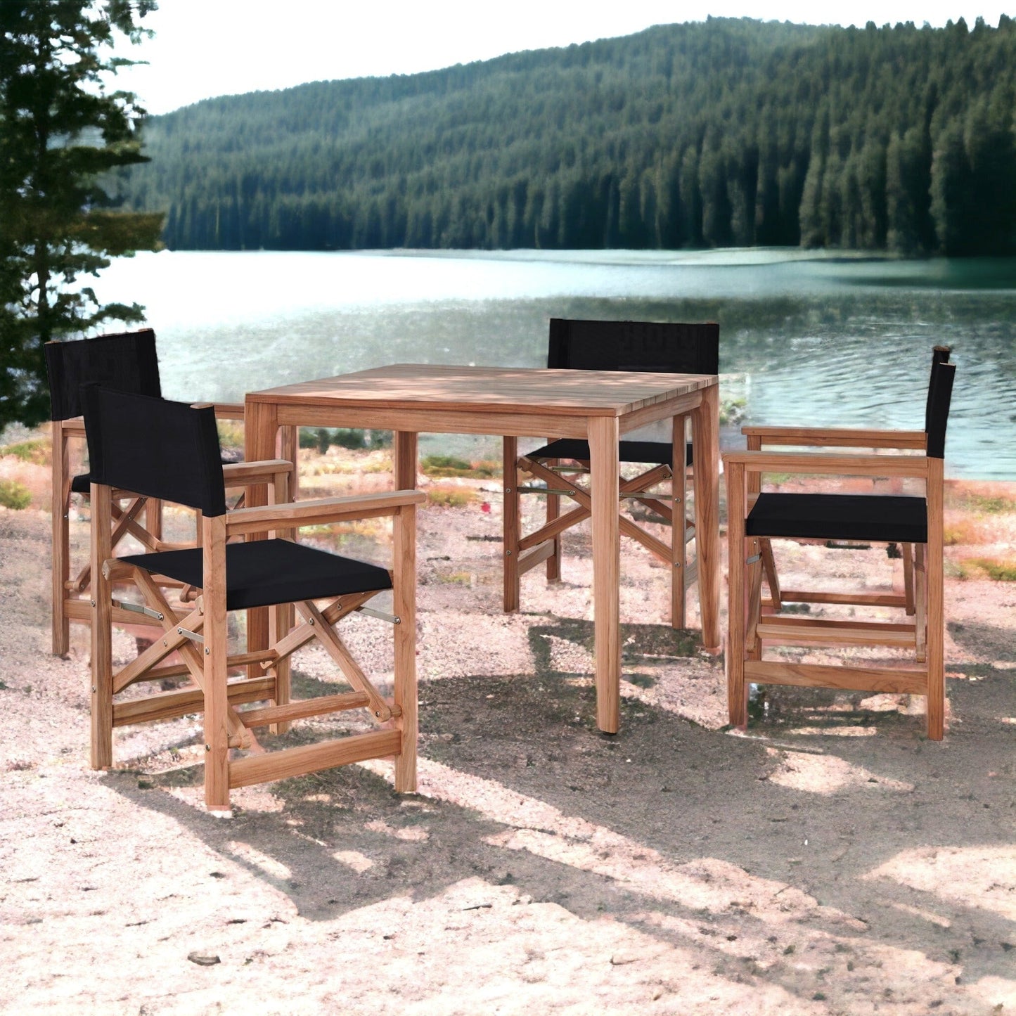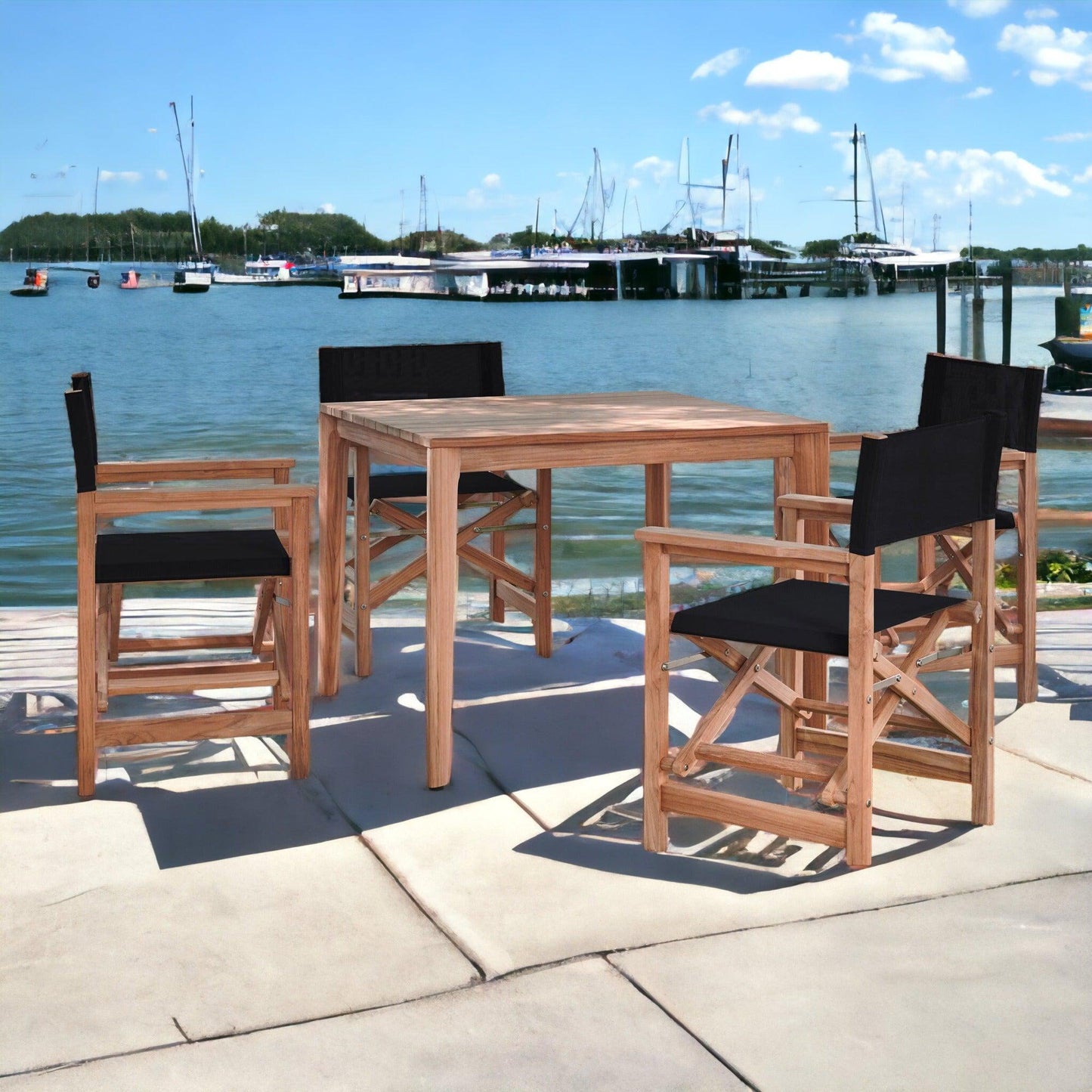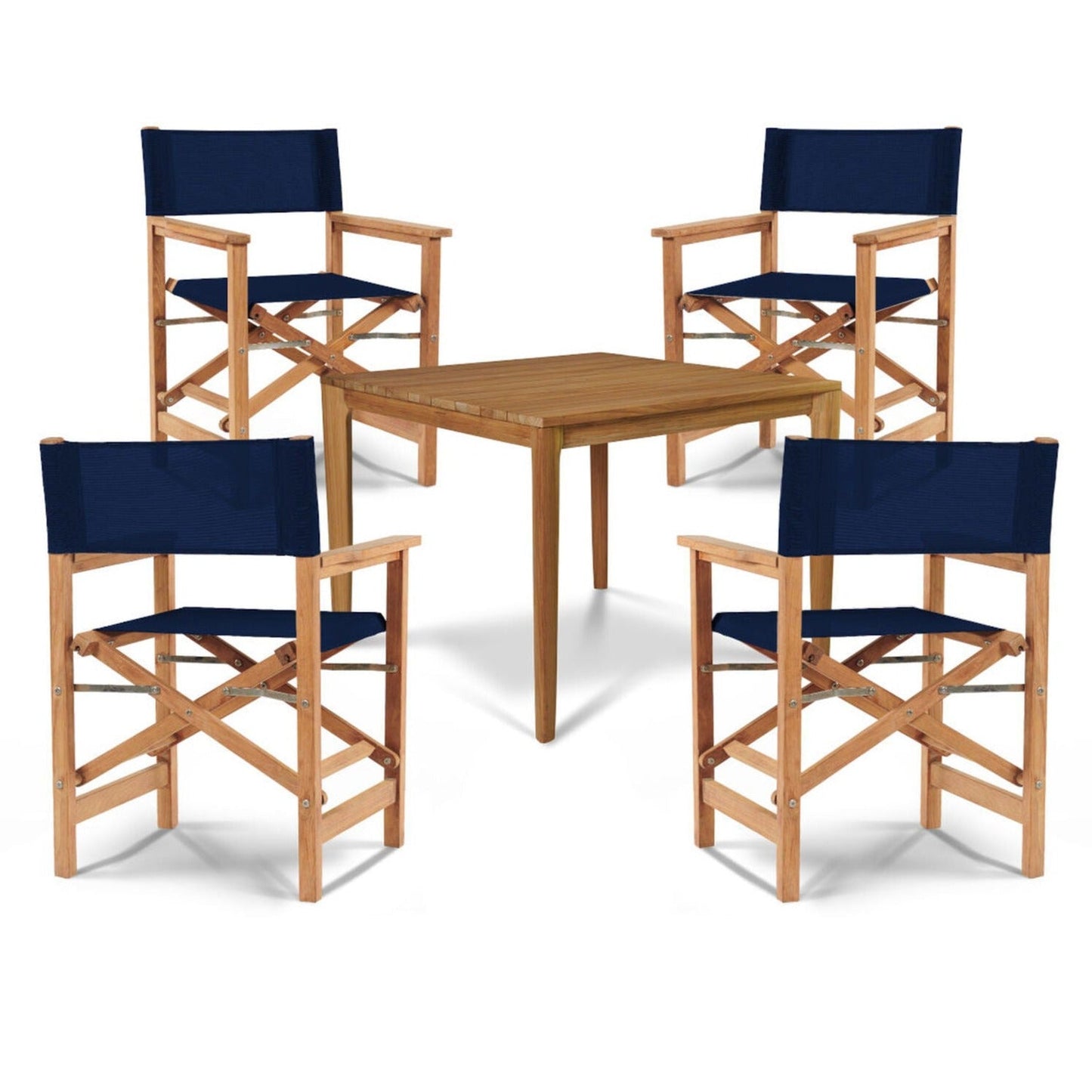 Tap into your adventurous spirit with the Del Ray 5-Piece Square Teak Outdoor Dining Set. This striking set features a contemporary design perfect for smaller spaces and casual dining. With a sturdy folding frame made of premium teak and a weather-resistant sling seat, this iconic chair is perfect for any outdoor setting.