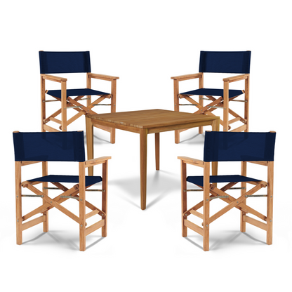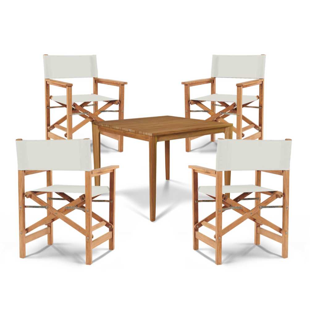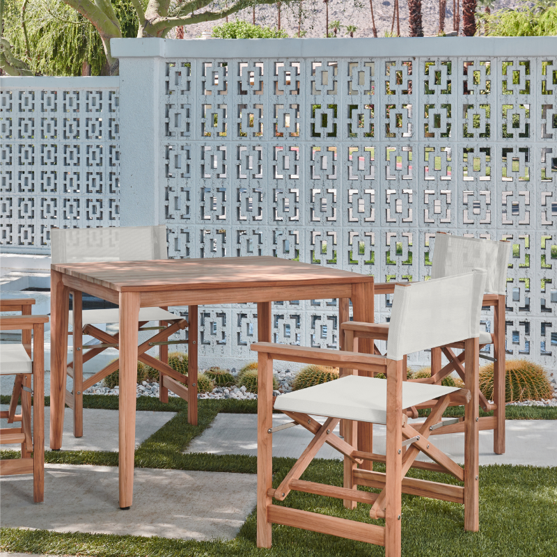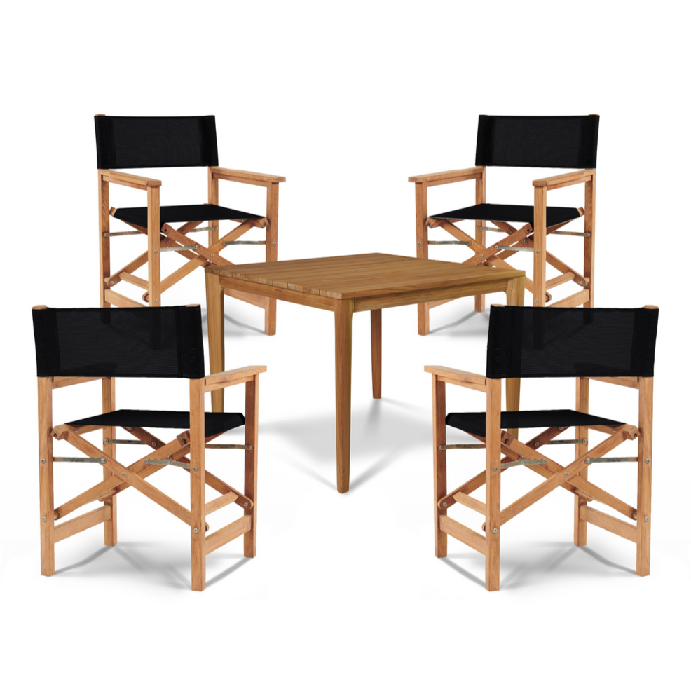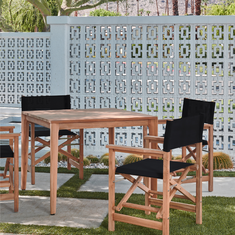Introducing a chic blend of style and functionality, the Del Ray 5-Piece Square Dining Set is the perfect addition to any outdoor space. Its sleek design, featuring a premium teak wood frame, ensures durability while offering a modern appeal. The set includes one square table and four armchairs that fold for convenient storage, making it an excellent choice for those with limited space. With a durable seat and back sling, the armchairs offer comfort and support, allowing you to enjoy leisurely meals outdoors. Designed for casual dining, this set comfortably seats four people, making it ideal for intimate gatherings.