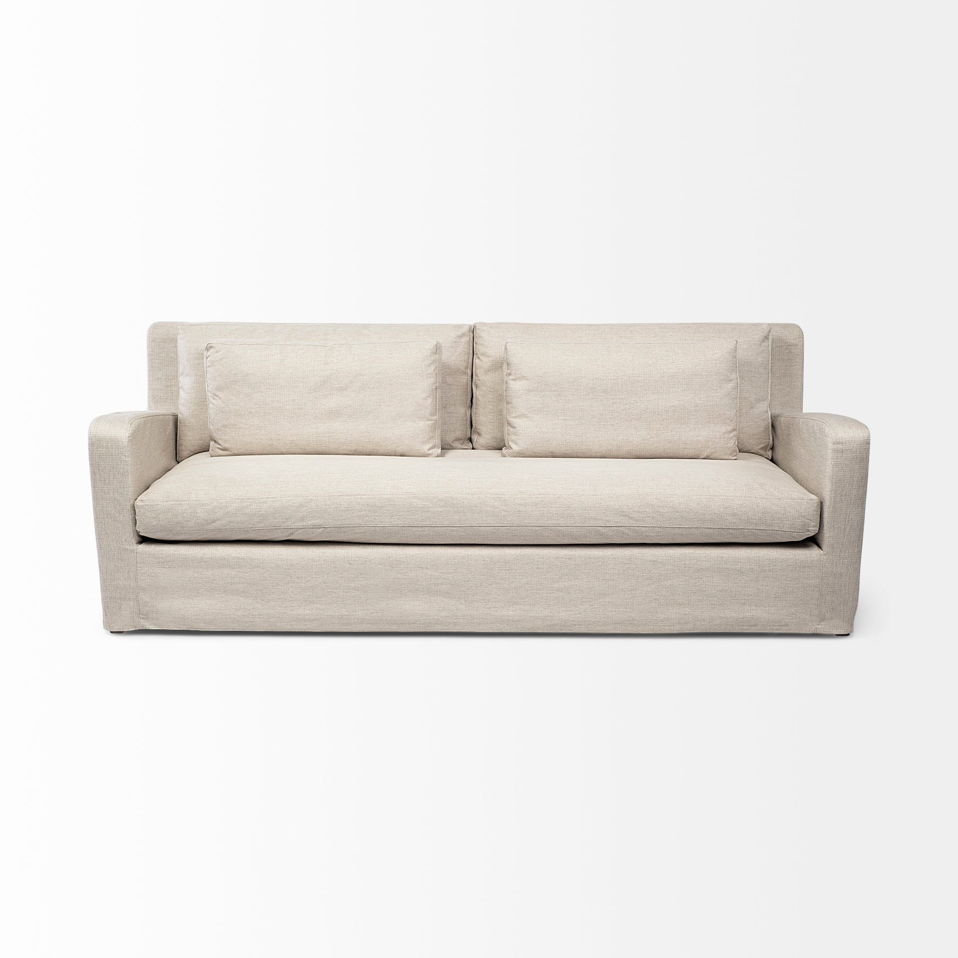 Denly Beige Slipcover Sofa Plush Comfort Wooden Frame Features: