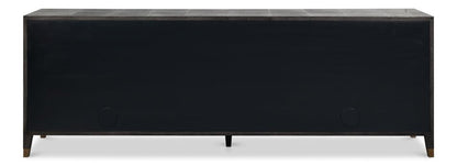The dark grey color and rectangular shape of the Desmond Sideboard make it a versatile piece that can enhance any room's decor. The combination of materials and finishes results in a striking piece that merges functionality with timeless elegance. Whether used for storage or as a decorative element, this sideboard is sure to elevate the look of your home.