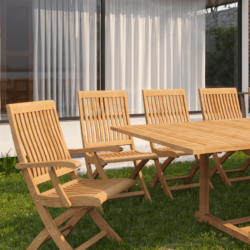 Devon 9-Piece Teak Dining Set with Extendable Table Features: