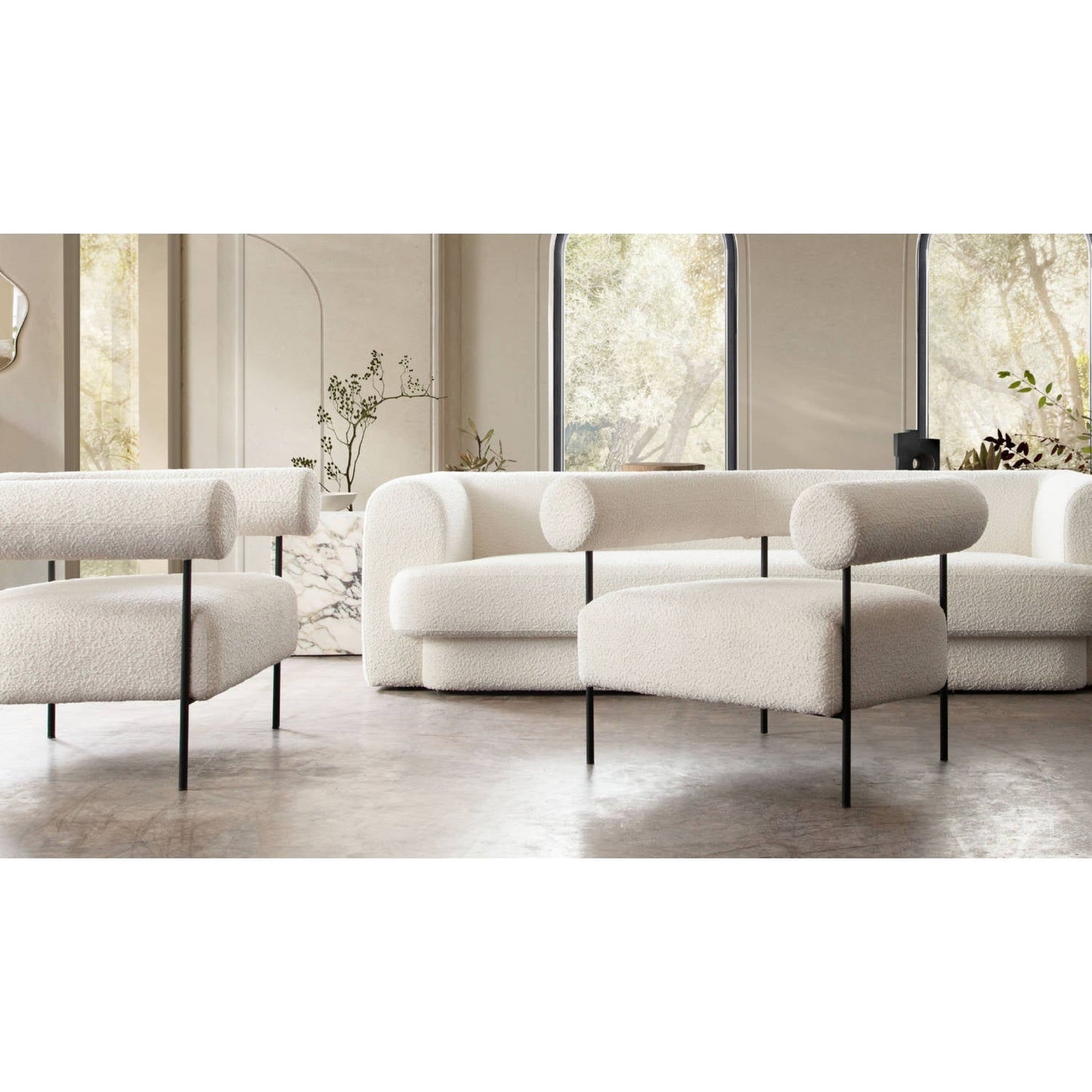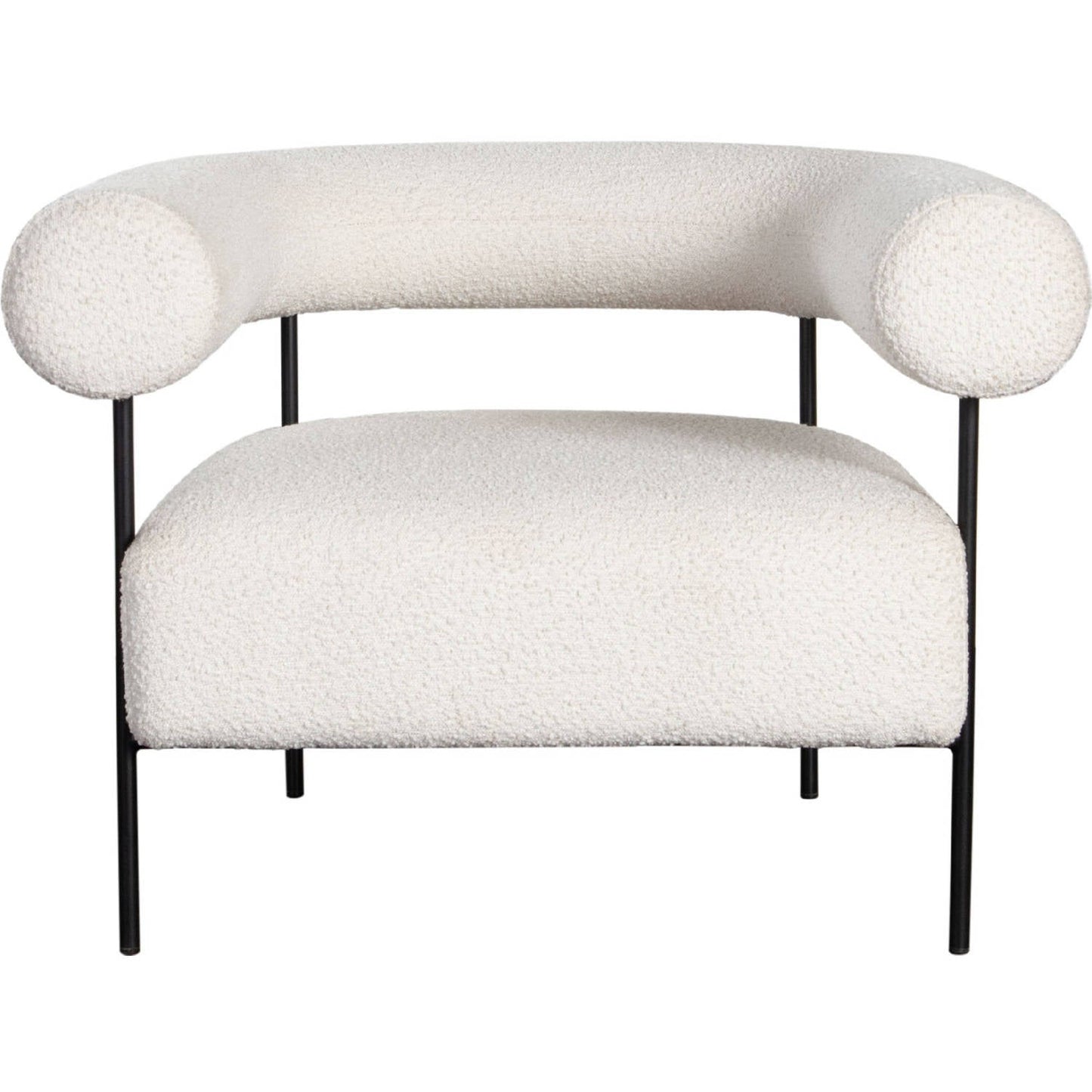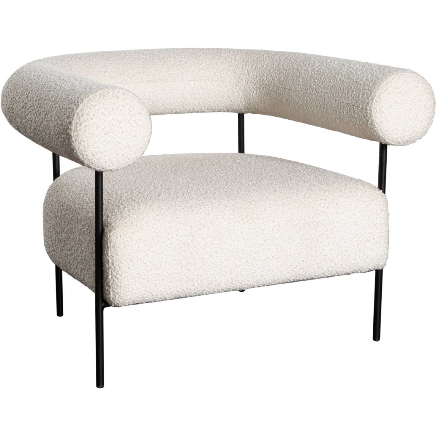 Get ready to push your boundaries and elevate your style with the District Accent Chair! Its unique curved design and luxurious Ivory Boucle fabric are matched seamlessly with bold Black Metal Legs and supports. Make a statement in your home and indulge in ultimate relaxation at the same time.