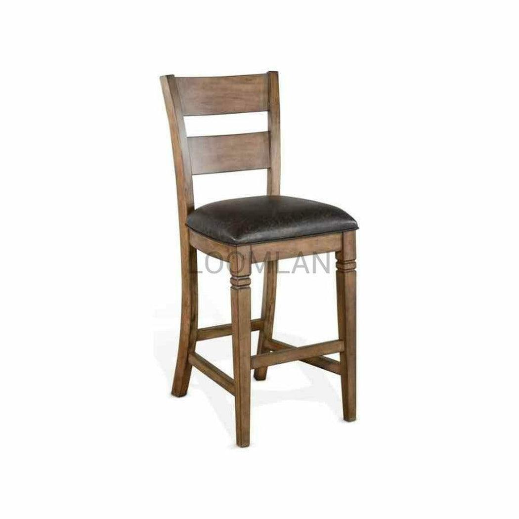 Expertly crafted from durable mahogany solids and veneers, the Dark Brown Bar Height Ladder Back Stool Cushion Seat by Sunny Designs is both functional and visually appealing. With a 30" seat height, it's ideal for any bar setting and adds a touch of rustic elegance to any room. Enjoy complimentary shipping on this versatile and charming barstool.