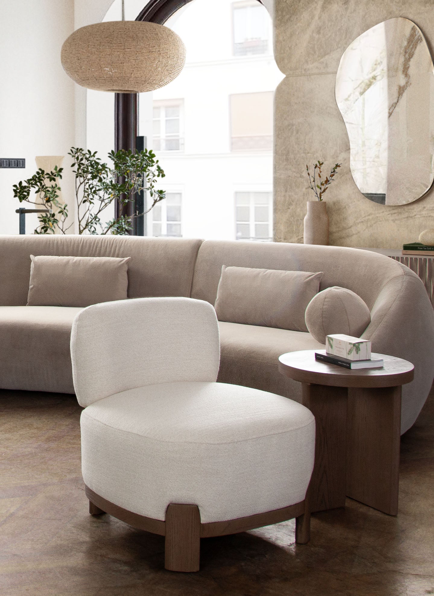 This chic accent chair is not only comfortable but also timeless in its design. The creamy fabric is soft to the touch, providing a luxurious feel that invites relaxation. The quality fabric, made from a blend of polydacron and polyester fibers, ensures durability and easy maintenance. Its compact design makes it an ideal choice for smaller spaces, or as an extra seating option in larger rooms.