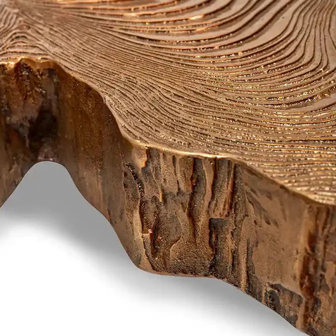 Handcrafted with precision, the Easton Slab Coffee Table offers a perfect blend of artistry and practicality. Made from cast aluminum, this table mimics the look of a live-edge wooden slab, bringing an organic touch to any living space. The brass finish enhances its earthy texture, making it a standout piece that draws attention without overwhelming the room. Whether used as a coffee table or a decorative centerpiece, its unique design complements both rustic and contemporary styles.