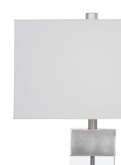 The Elara Table Lamp adds a touch of glamour to any room with its elegant silver striped design and sparkling crystal accents. Whether your space is traditional or modern, this lamp fits in perfectly, offering a soft glow and timeless charm. Topped with a crisp white rectangular linen shade, it brings sophistication to your decor. Its versatile look makes it a chic addition to any room, while its subtle luxury lifts the atmosphere with ease.