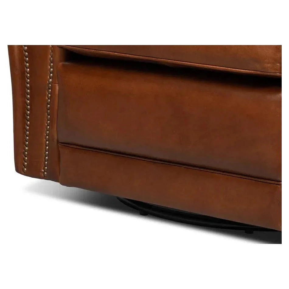 Enhance your decor with the Elite French Club Swivel Chair in a stunning brown hue. Combining style and functionality, this chair boasts a Vintage Havana Leather upholstery and a swivel base, making it a standout piece. Made from top grain cow Leather and metal, it exudes luxury and durability. Experience the ultimate blend of timeless sophistication and practicality with the Elite French Club Swivel Chair. Elevate your space with this opulent chair wrapped in vintage Havana Leather and featuring a sturdy swivel base. Enjoy the lasting comfort and elegant design of top grain cow Leather and metal construction.
