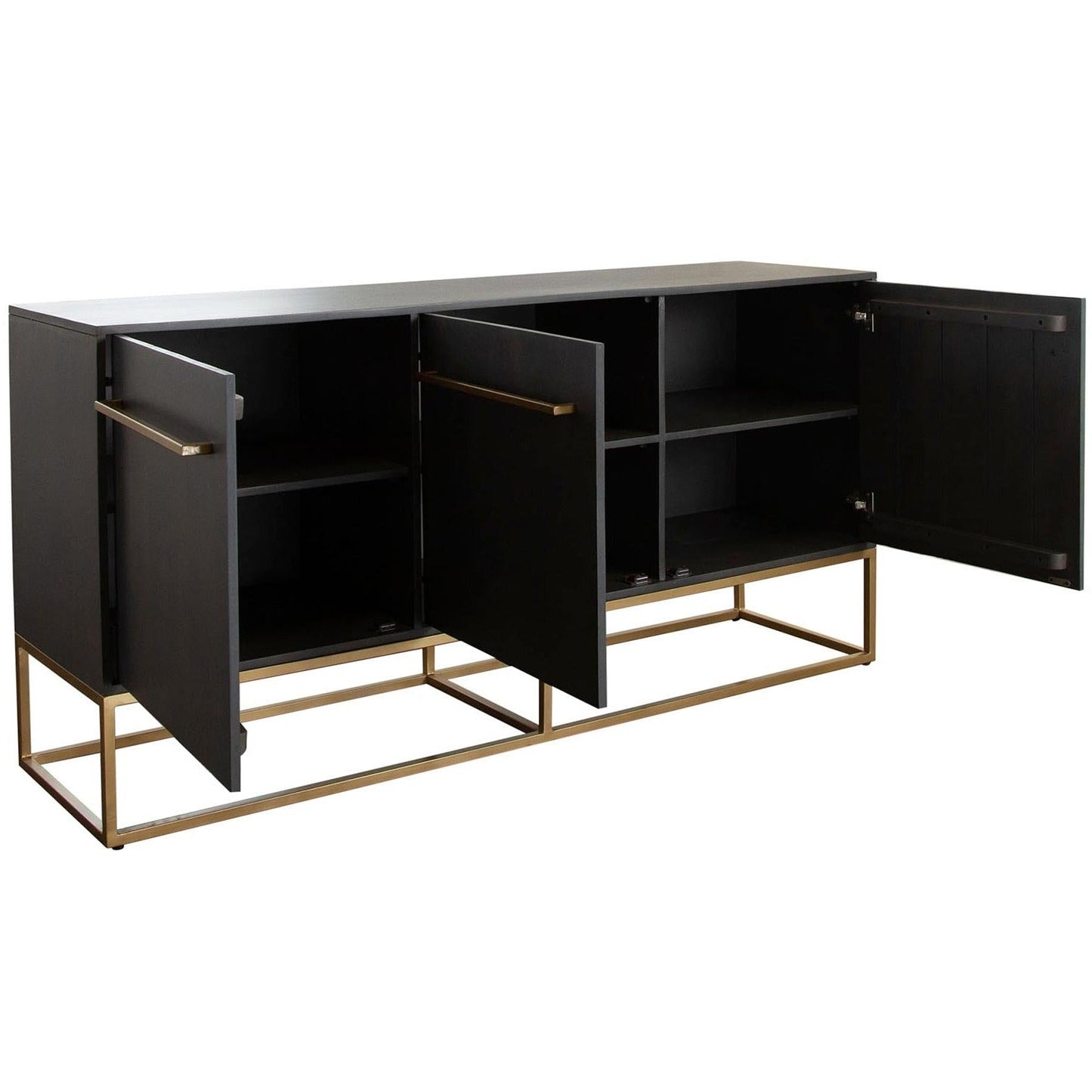 Encore Solid Mango Wood 3-Door Sideboard in Grey Oak Finish Features: