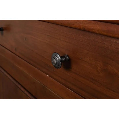 Expertly made with quality walnut solids and veneers, the Dante Hall Cabinet is perfect for storing media components and home accents. Its adjustable shelving allows for versatile organization, while the smooth sanded finish highlights the natural beauty of the wood. With elegant shapes, carved feet, and antiqued bronze hardware adding dimension, this rich walnut-finished cabinet is sure to become a timeless heirloom in any living or dining area.