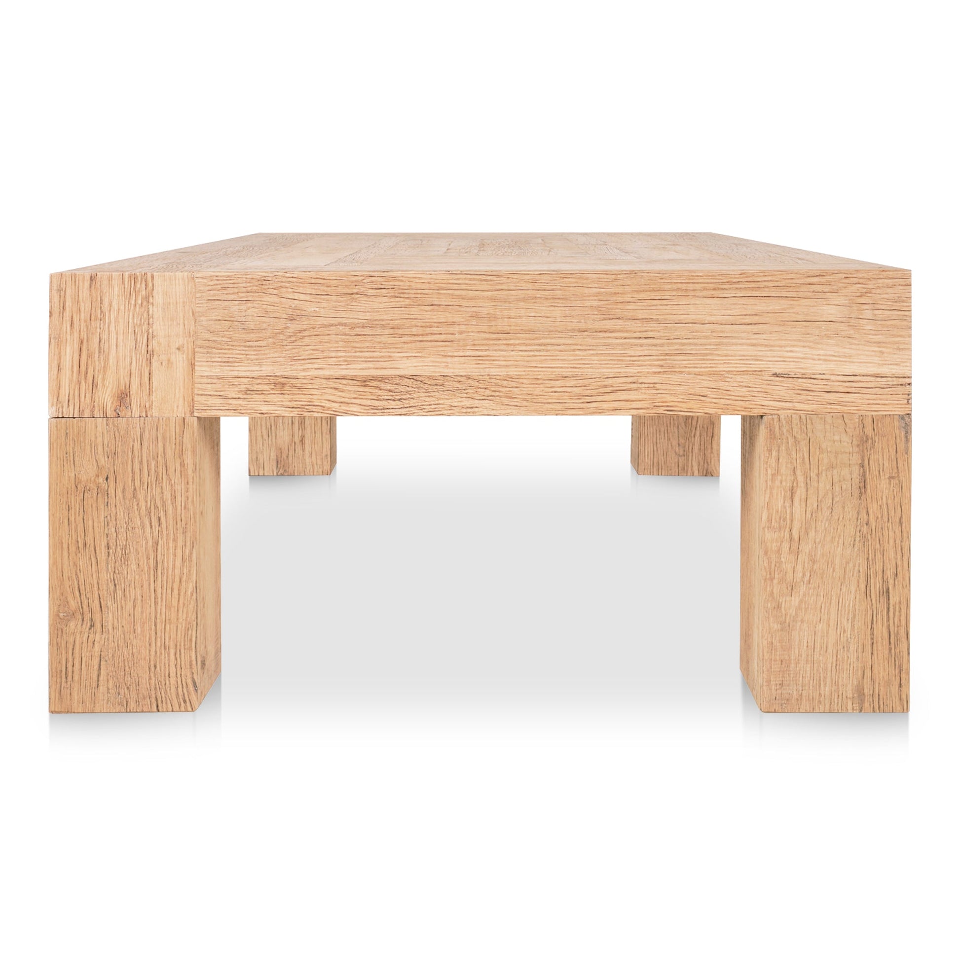 The Evander Coffee Table is a perfect blend of natural beauty and modern design, crafted from reclaimed oak to highlight the wood's unique grains and knots. Its block-like structure combines rustic charm with contemporary style, making it a standout piece in any living space. The natural color of the oak enhances its organic feel, allowing it to seamlessly fit into various interior themes, while its solid oak frame and veneer panels ensure both durability and sturdiness. Ideal for those who appreciate a balance of aesthetics and functionality, this coffee table adds both style and purpose to your home.