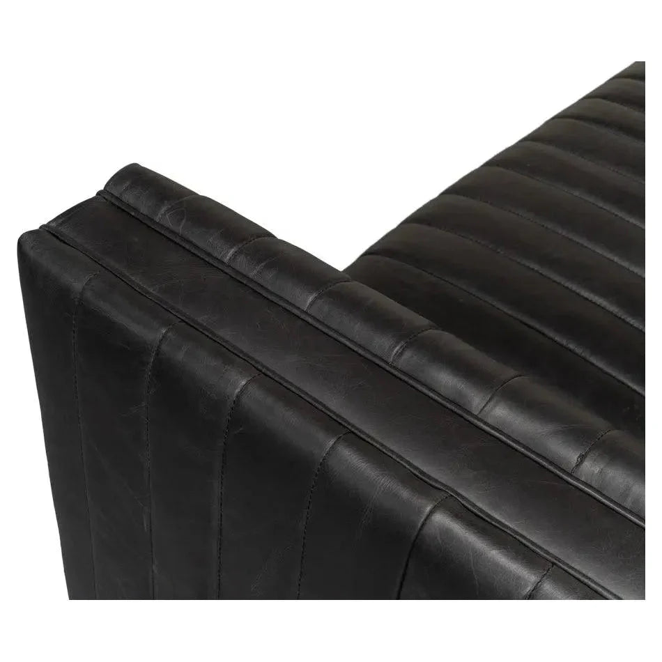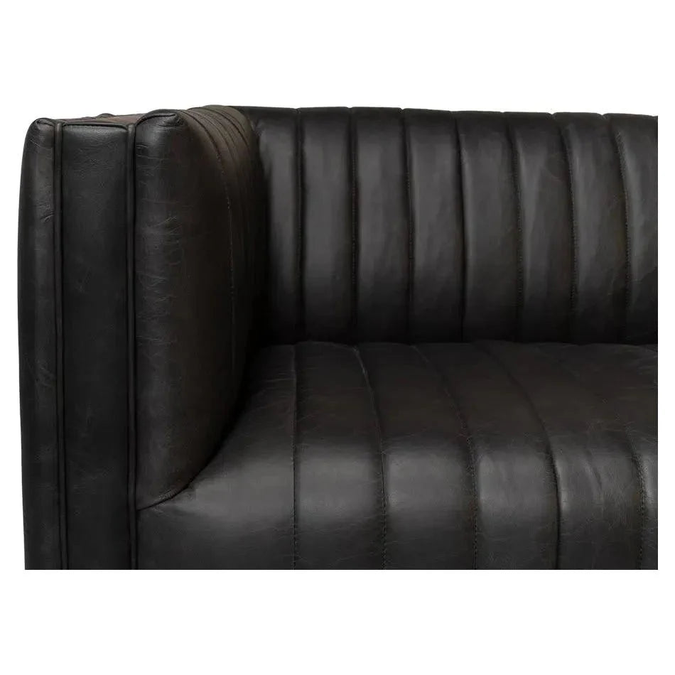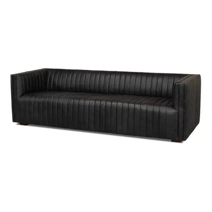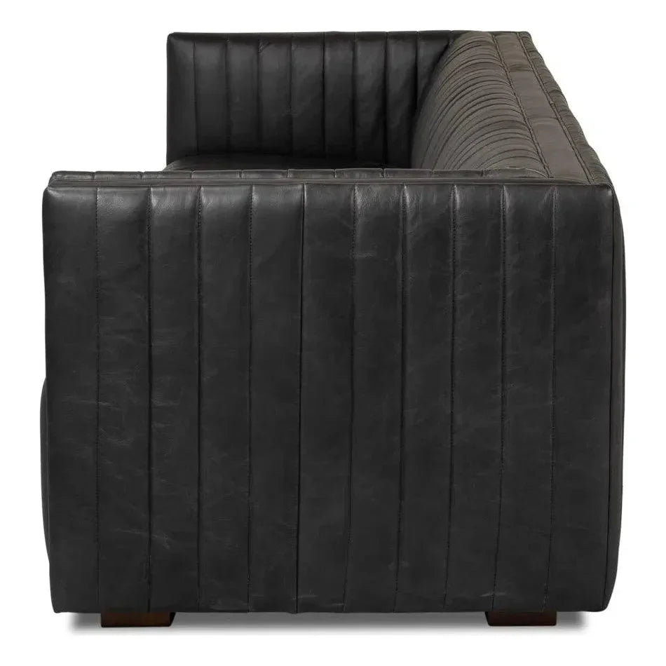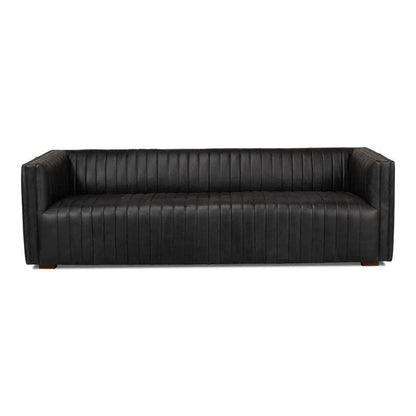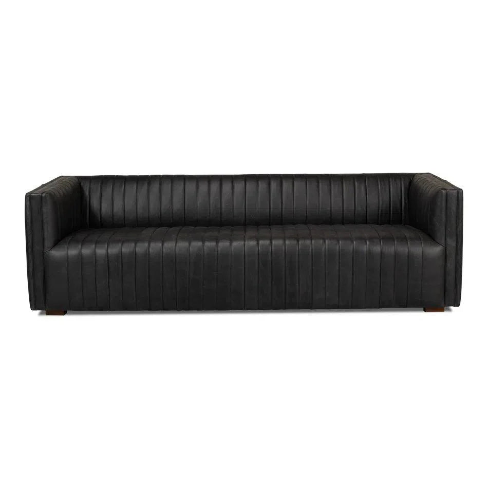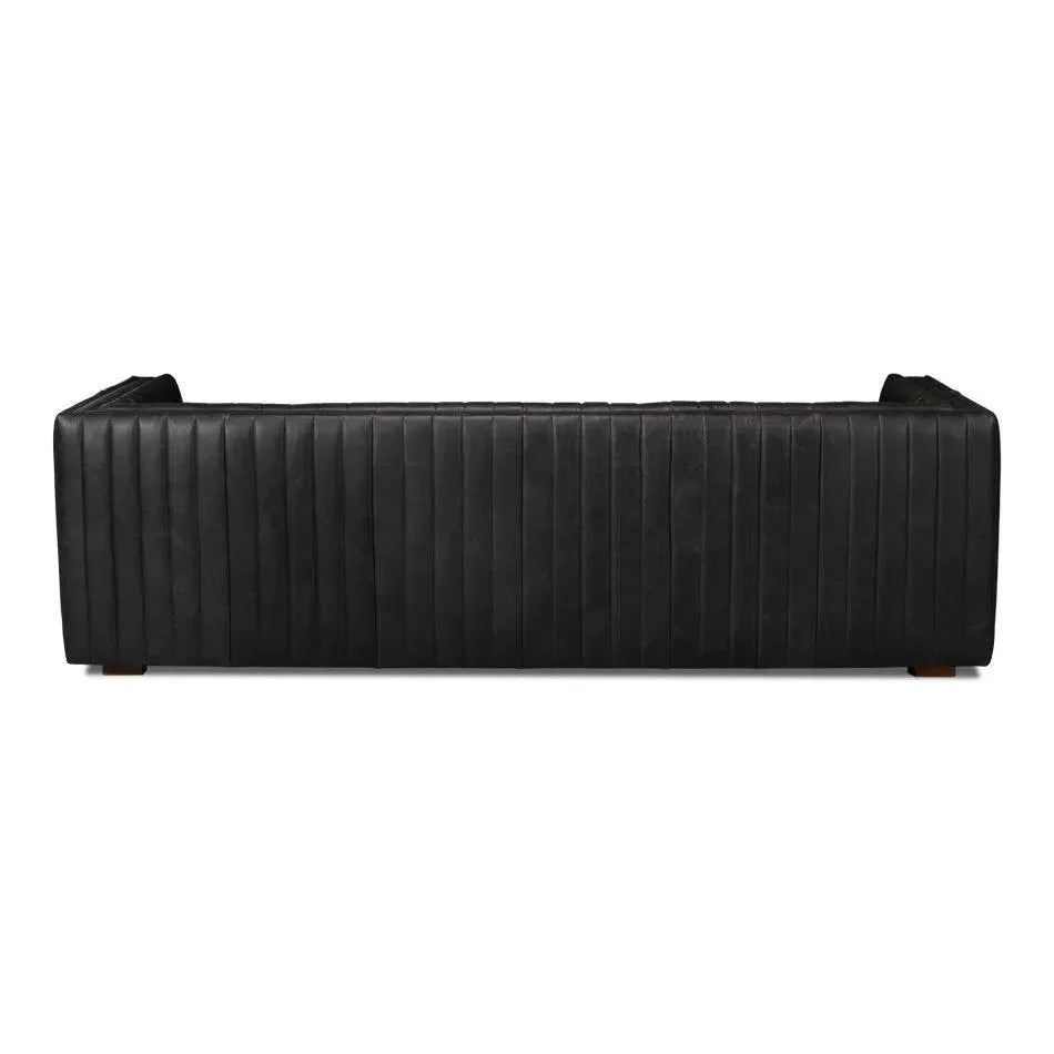 Everett Sofa Modern Channel Tufted Black Leather Couch Features: