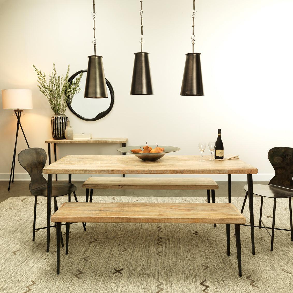 Bring a balance of rustic warmth and modern elegance to your dining space with this 72" Farmhouse Style Dining Table. Crafted with hand-worked mango wood tops, available in dark stained or natural waxed finishes, each piece highlights the organic character of the wood. The hammered antique iron or antique silver legs add refined contrast, blending durability with sophistication. Perfect for both everyday dining and entertaining, this table embodies farmhouse charm with a contemporary touch, making it a versatile centerpiece for a variety of interior styles.