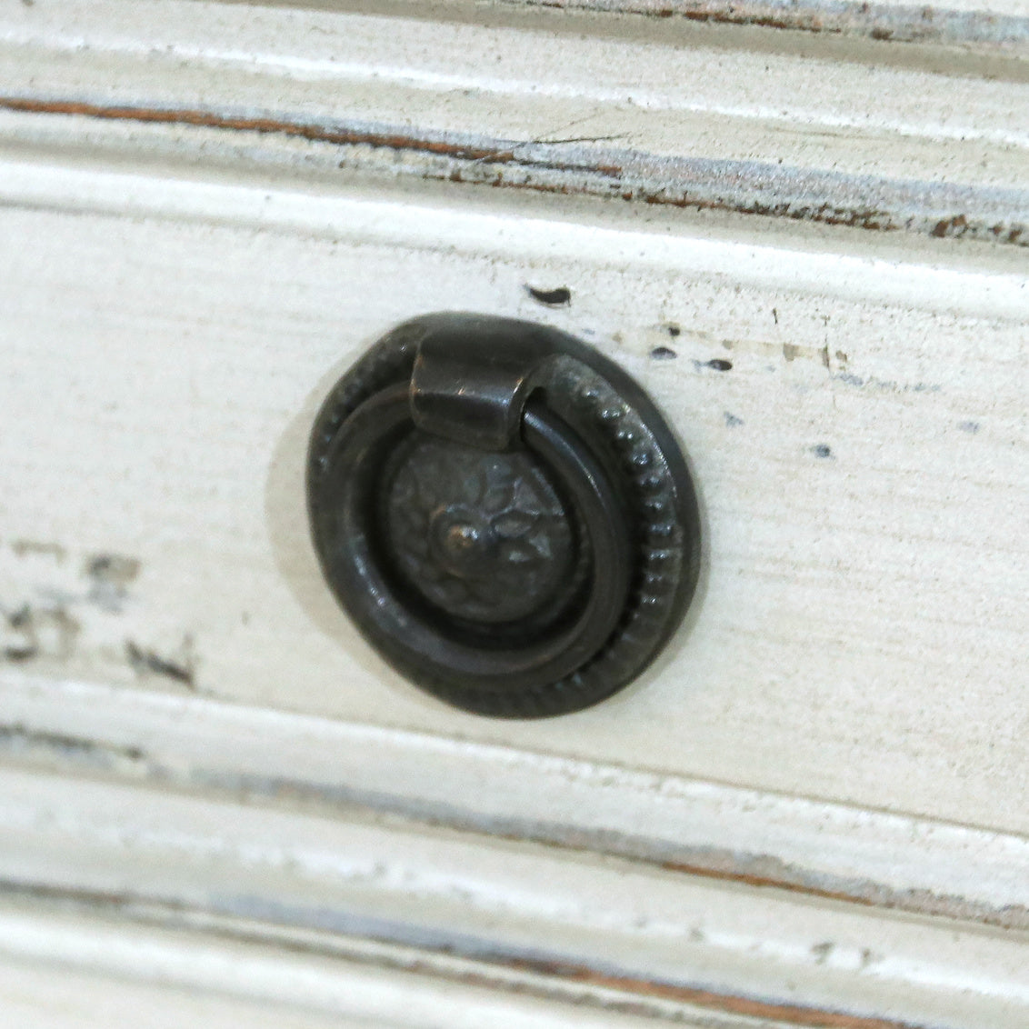 The top boasts an antiqued mirror, adding a touch of glitz and practicality. Distinguish your space with a burst of glam! The timeless antiqued mirror top brings a touch of sparkle to your daily routine. Its compact size makes it suitable for any room, making it an effortless choice for any design aesthetic.