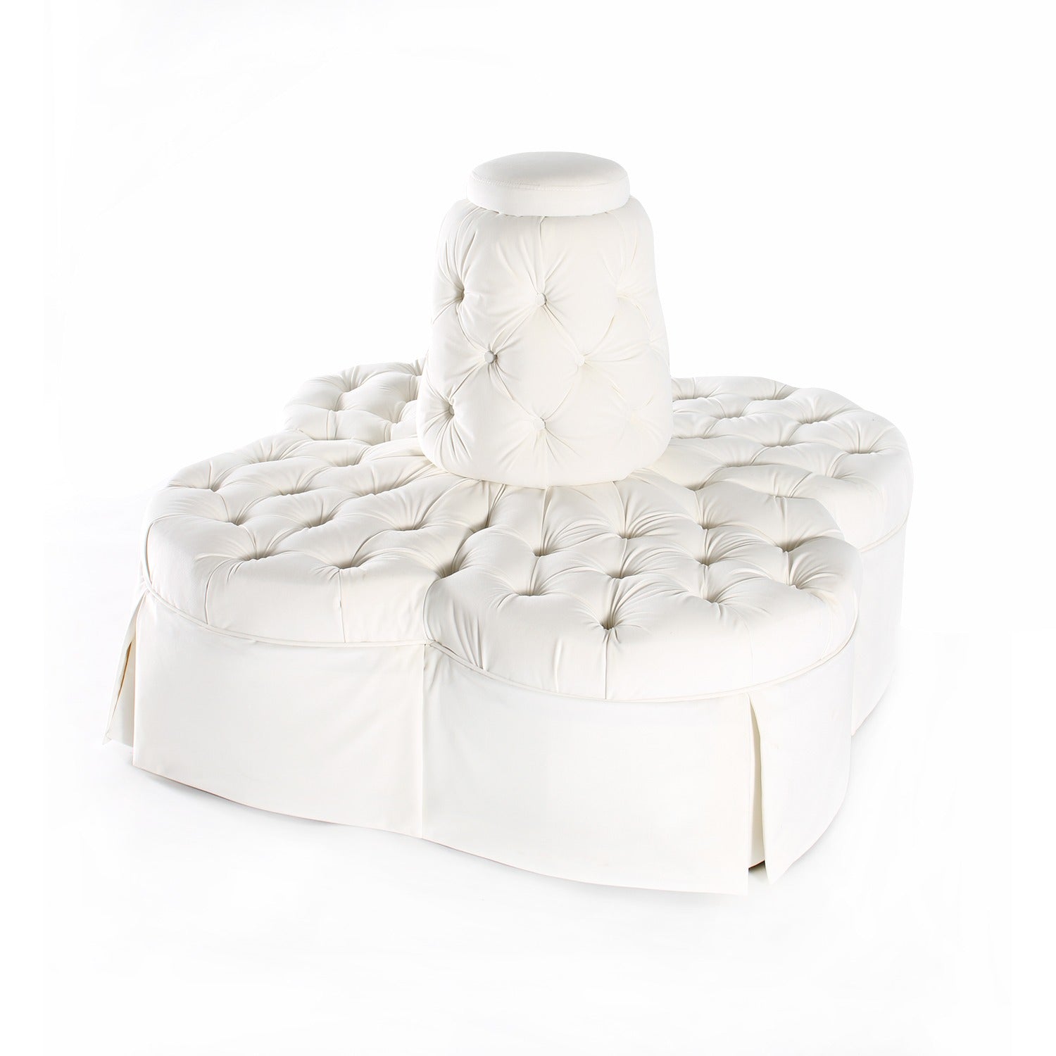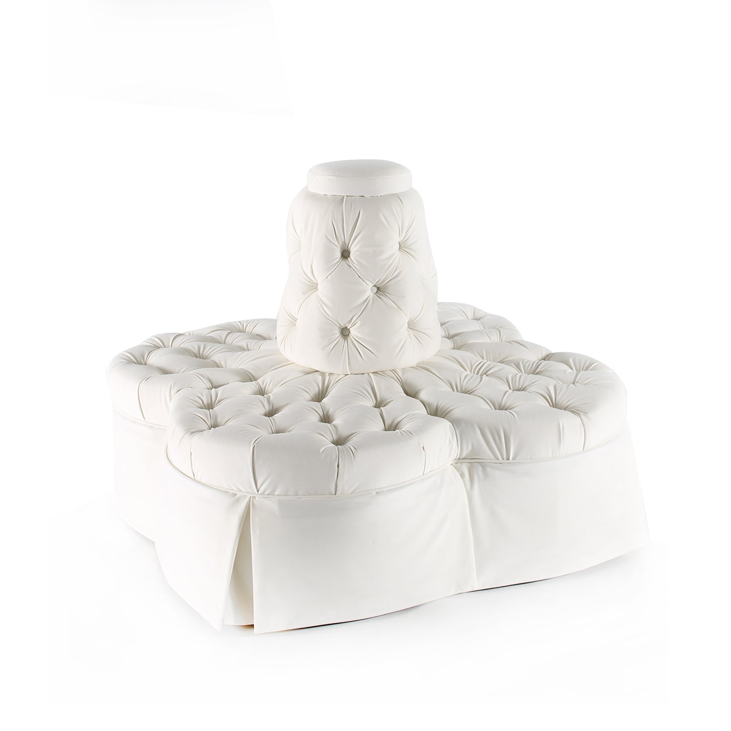 - Design: Tufted with pleated skirt