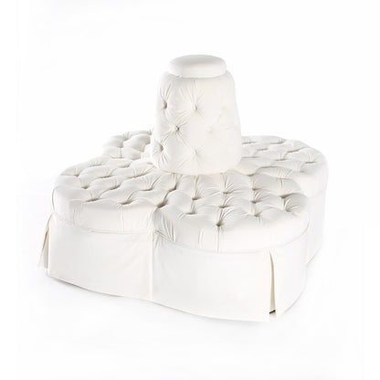 The Fleur Island Sofa, in a striking Reba White finish, is designed to capture attention in any living space. Its unique shape allows for seating from multiple angles, making it versatile for gatherings or quiet moments alike. The tufted design paired with a pleated skirt brings an inviting charm, while the soft, white velvet upholstery adds a touch of luxury. This sofa not only delivers on style but also on comfort, providing a plush experience that complements its elegant appearance.