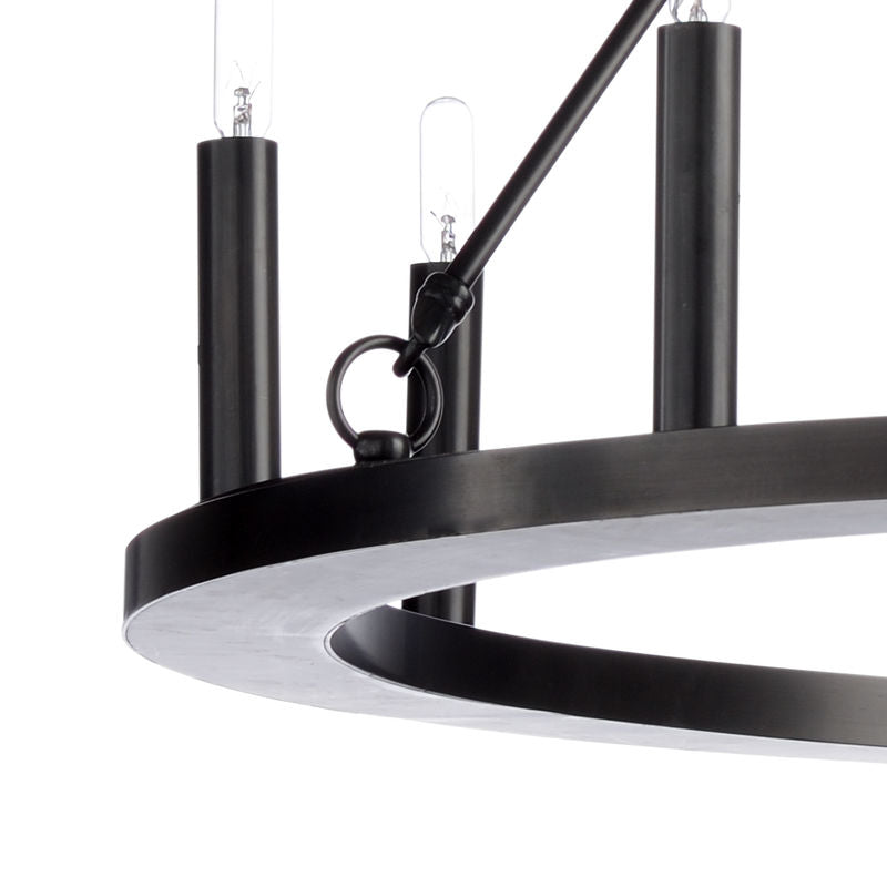 Inspired by vintage wagon wheels, the Florentine Chandelier brings a simple yet charming look to any room. This piece is perfect for a rustic or farmhouse style, adding a touch of natural elegance to your home. Crafted with a dark bronze finish over sturdy iron, this chandelier is designed to make a statement. Its open circle design enhances its unique appeal, making it a focal point when hung over a dining table or in a living area. The Florentine Chandelier is not just about style; it's about creating a warm and inviting atmosphere in your home. The rustic elegance of the Florentine Chandelier is enhanced by its thoughtful design.