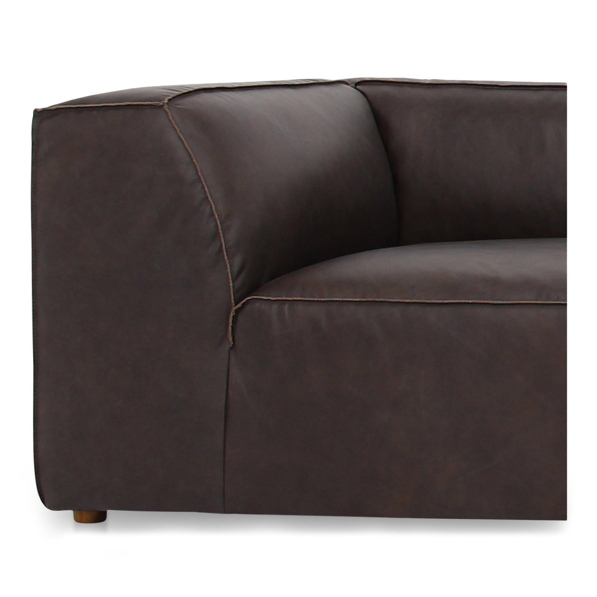 The Form Nook Modular Sectional in Espresso Brown combines style and functionality to create a flexible seating solution for any living space. Upholstered in full top-grain leather, this sectional is both durable and comfortable, with a rich brown color and reverse stitching accents adding a modern touch. The plump, slightly rounded silhouette is inviting, providing a cozy spot for relaxation after a long day. Its design makes it a perfect fit for contemporary homes, offering a chic and welcoming aesthetic. Equipped with foam cushions filled with feather and fiber-fill, the Form Nook ensures a plush yet supportive seating experience. Supported by a red meranti frame and zig-zag spring support, this sectional promises durability and stability.
