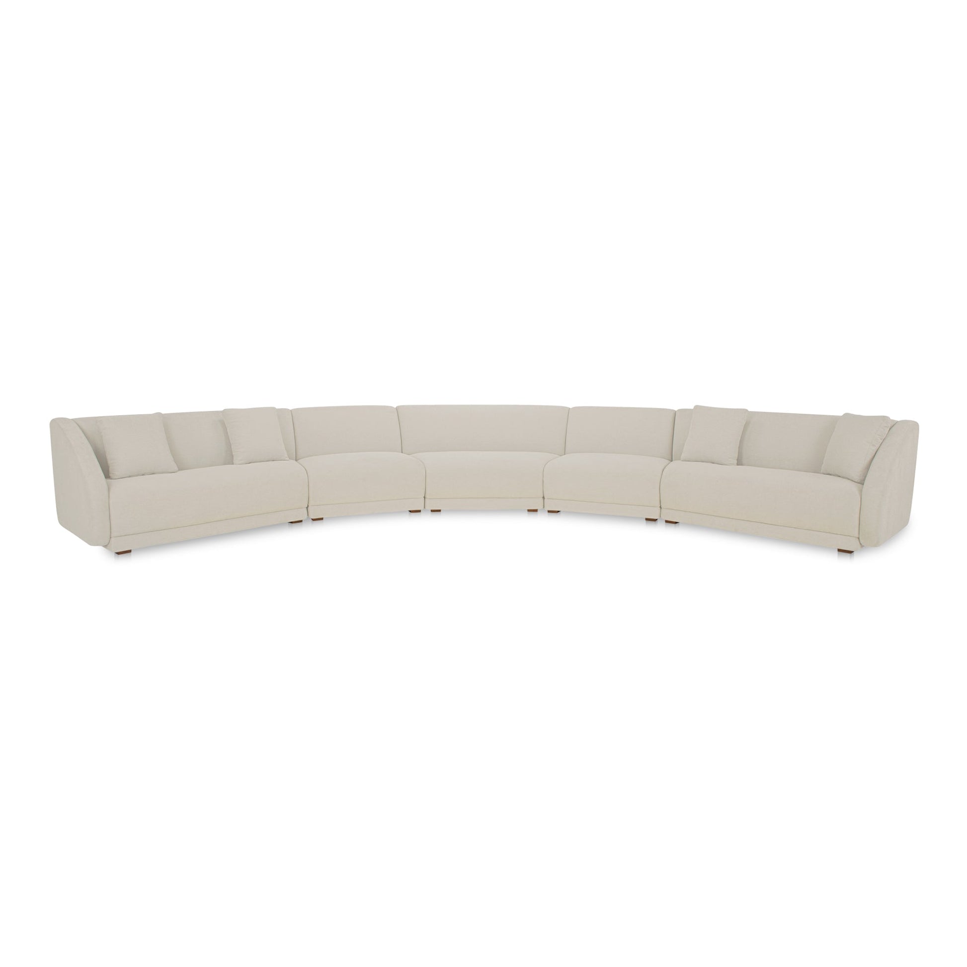 The Fraser 5 Piece Modular Sectional combines timeless design with modern comfort, making it the perfect addition to any living space. Available in White and Deep Blue, this sectional is inspired by the elegance of the 60s and 70s, with a contemporary design that includes angled sides, gentle sloped arms, and a minimalist plinth base. Upholstered in 100% polyester, it provides a luxurious and durable feel, while the foam and fiber seating ensures optimal comfort. Whether hosting a gathering or relaxing on your own, this sectional comfortably seats up to seven people, making it ideal for family rooms or entertainment spaces. Designed for both style and functionality, the Fraser sectional adapts to various living spaces with its modular design.