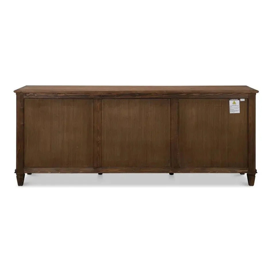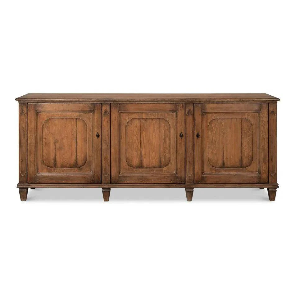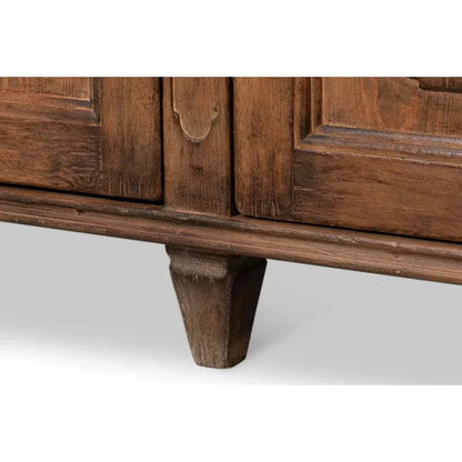 Rustic French country charm comes home in the French Country Sideboard Old Pine Stain. Handcrafted from solid Reclaimed Pine by talented artisans, this 87 inch wide sideboard features 3 doors concealing 3 adjustable shelves - providing ample organized storage. Its warm brown finish variates in tones bringing depth. Built with care using premium materials, let this sideboard infuse timeworn warmth into your home for years to come.