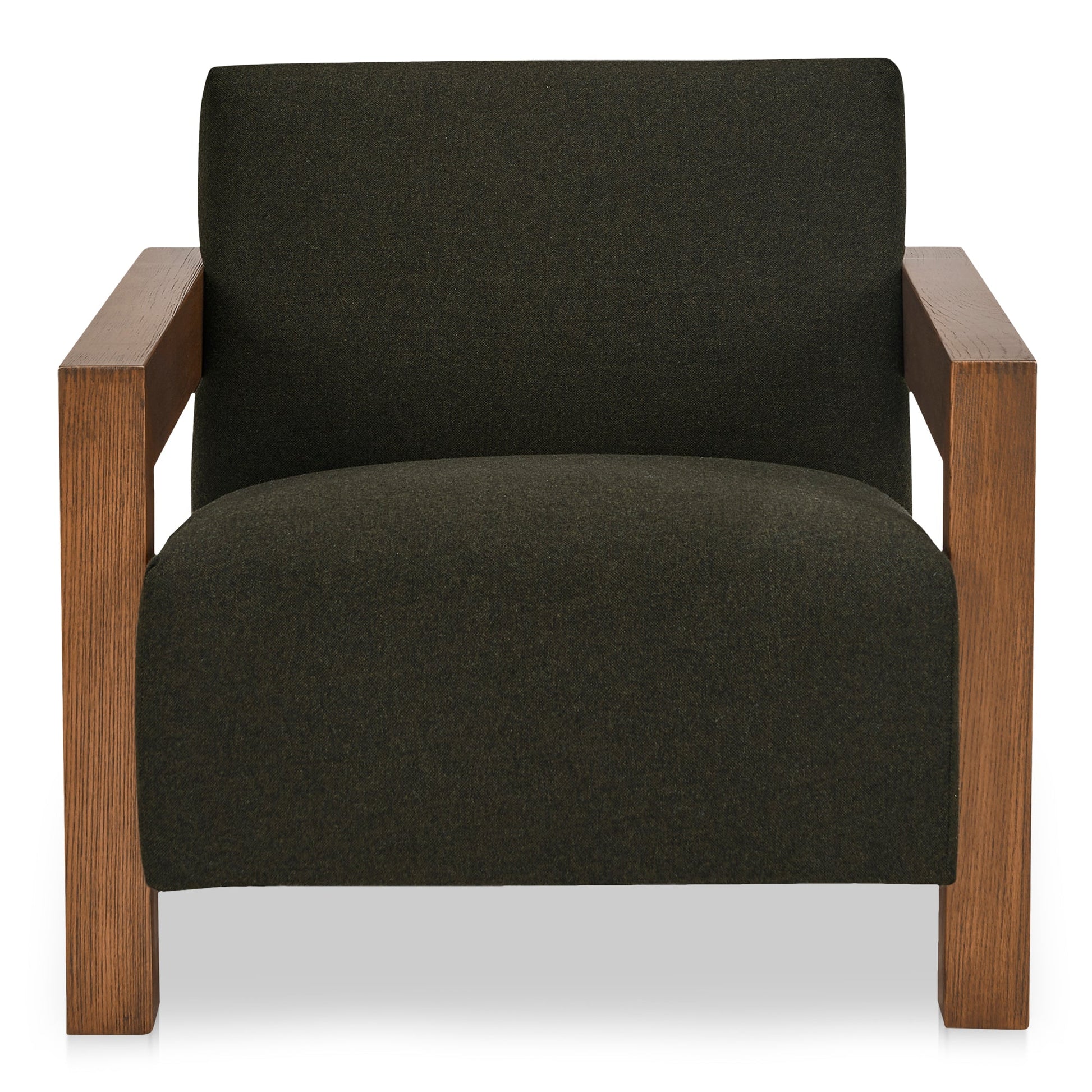 The Garnet Lounge Chair, available in Grey and Green wool blend upholstery, brings together traditional charm and retro character with its solid oak frame and warm, aged stain finish. Highlighting the expressive wood grain, the frame adds a heritage touch to any setting. The chair’s blocky form complements both modern and classic interiors, while the wool blend upholstery offers a soft, cozy seat that makes it ideal for relaxing, reading, or entertaining. Whether you choose the versatile Grey or the bold Green, this chair is designed to offer style, comfort, and a welcoming presence in any room. Upholstered in a blend of 50% wool and 50% polyester, the Garnet Lounge Chair balances comfort and durability.