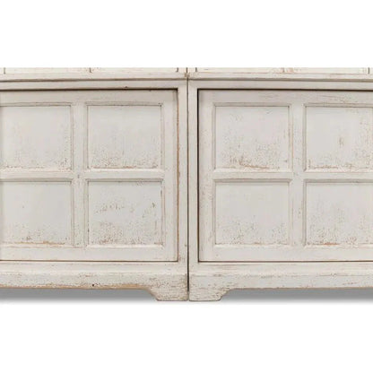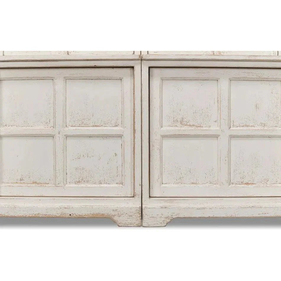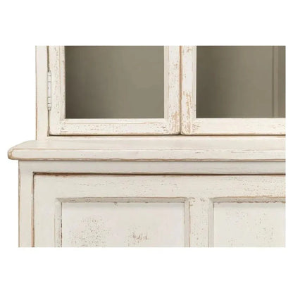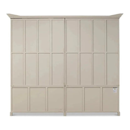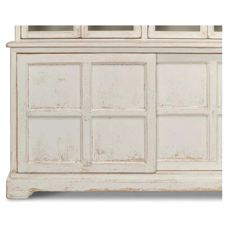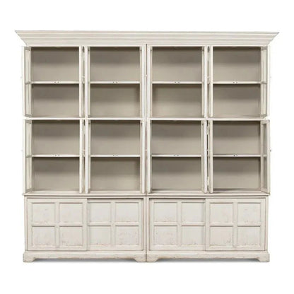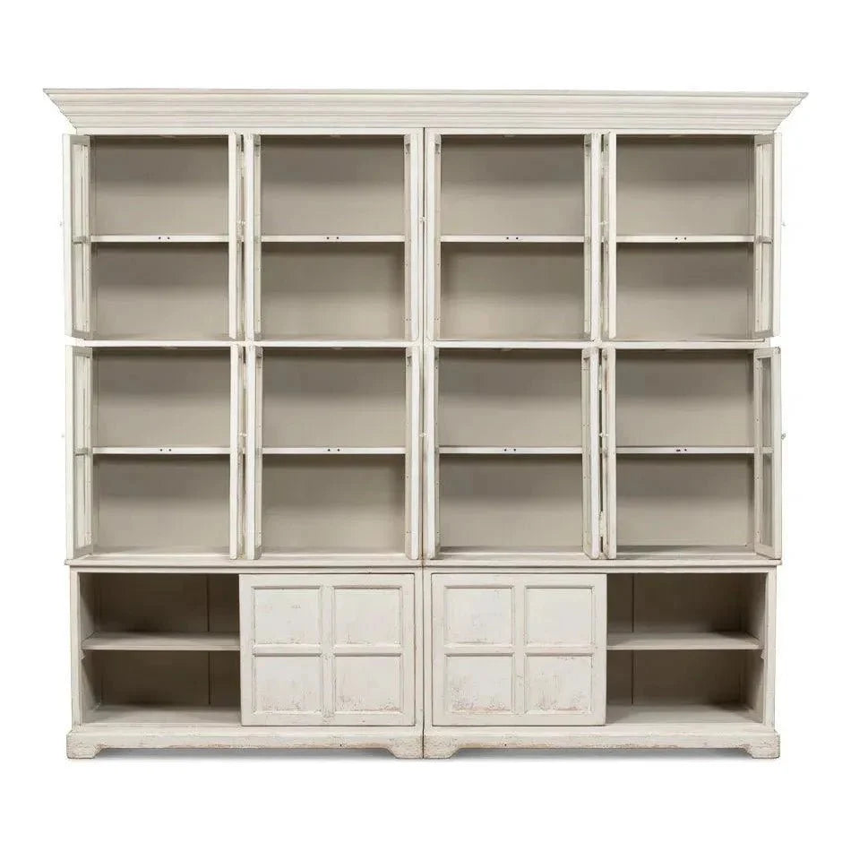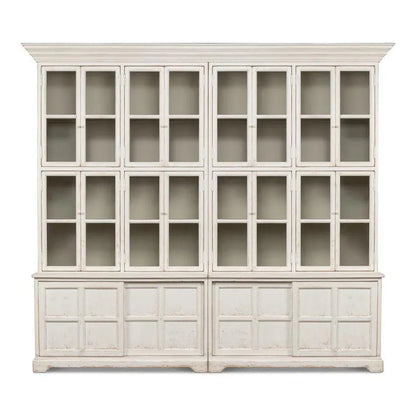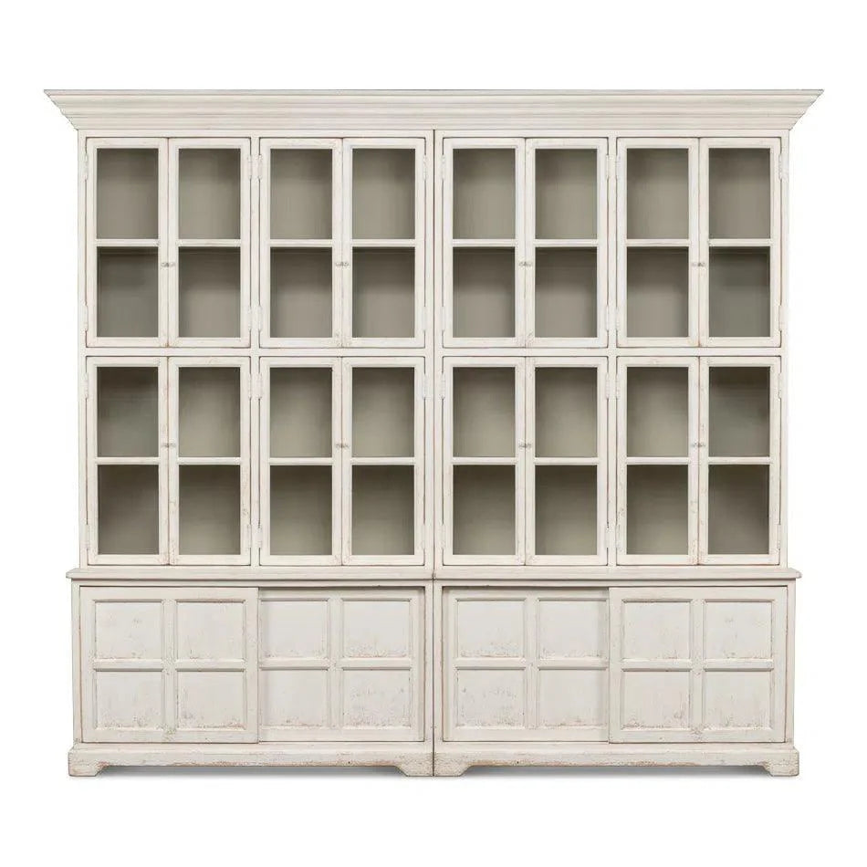 Step into a world of literary beauty with the Glass Front Bookcase. Expertly crafted from pristine pine and painted in an elegant antique white, this majestic structure stands tall at 121"x22"x106" and promises timeless charm. More than just a piece of furniture, it is a symbol of timeless design. The transparent glass doors invite viewers into the shelves within. With eight fixed and two adjustable shelves, it offers versatility for displaying your prized collectibles or extensive book collection.