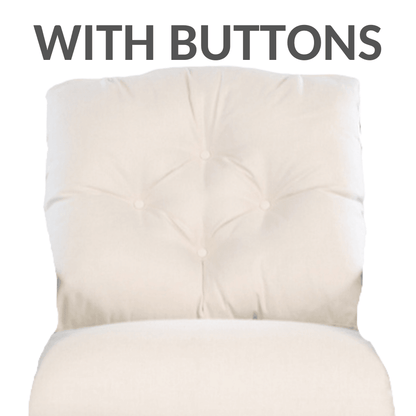 - Seat cushions are made with a core of foam for structure and longevity, wrapped with polyester layered fill for plush comfort, and completely encased in a moisture-resistant fabric for low maintenance in outdoor settings