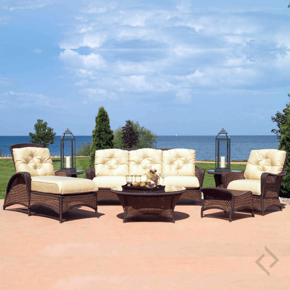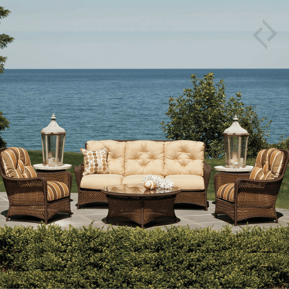 The Grand Traverse wicker collection from Lloyd Flanders offers both style and functionality, creating a tranquil outdoor oasis from the daily hustle and bustle. Made with durable Sunloom vinyl, this collection can withstand multiple seasons of use and endless conversations. Perfect for the lanai, sun room, or front lawn, the Grand Traverse collection is versatile and adaptable to any lifestyle and seasonal changes. Choose from two wicker colors (Brown-Caramel or Ivory-Bisque) and a wide selection of outdoor fabrics. The wicker is resistant to cracking and peeling and is also available in customizable colors. Build your ideal patio furniture set with two rust-resistant wicker finishes and a diverse selection of fade-resistant, mildew-resistant, and water-repellent fabrics. With comfortable loose cushions and elegant back buttons, each piece exudes classic American charm while providing exceptional seating comfort and resilience. Plus, the materials used are inherently mildew and bacteria resistant and are environmentally friendly.