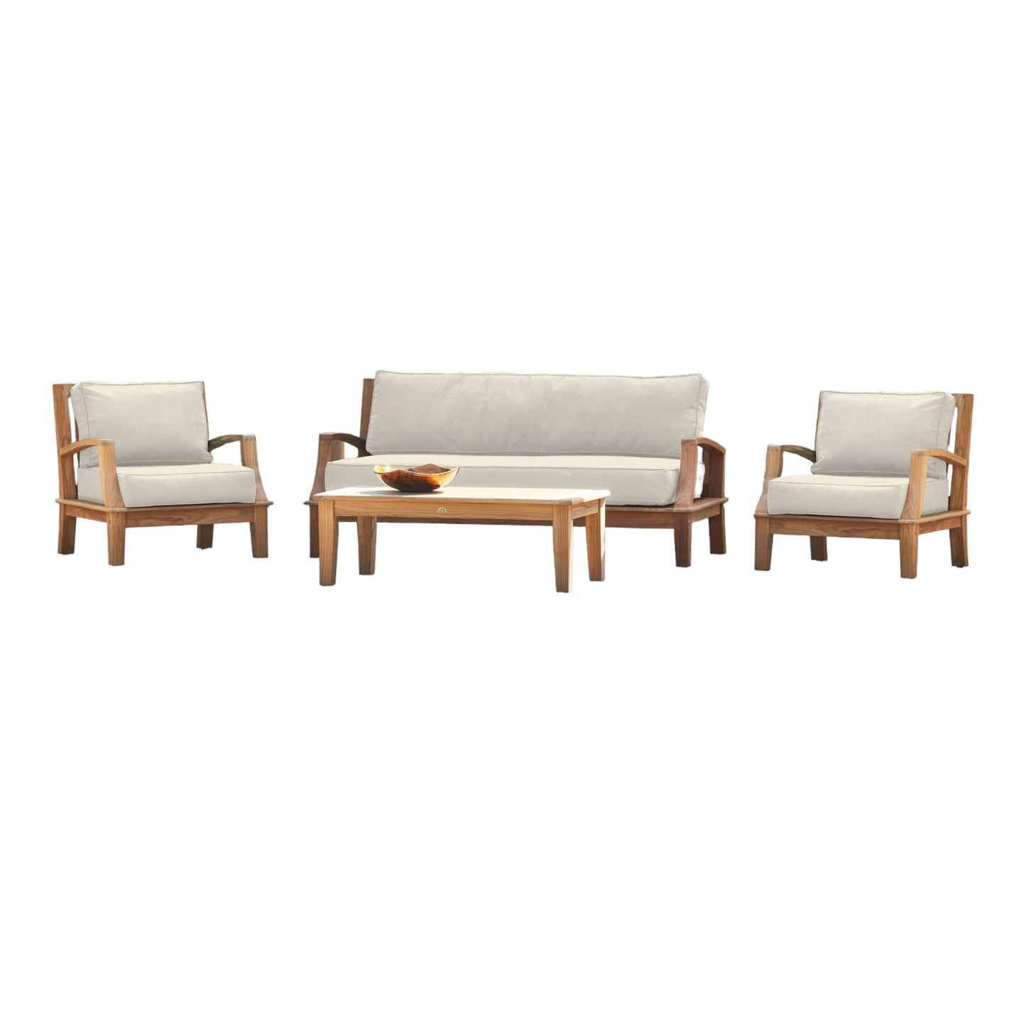 Aalto Teak Patio Deep Sofa Set with Sunbrella 4PC