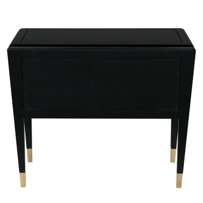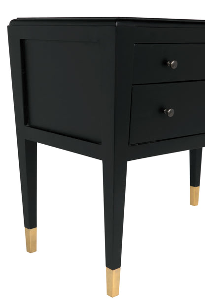 The Grant Cabinet is a stunning piece that brings a touch of elegance and style to any room. Its sleek black finish and clean lines create a minimalist look, making it a versatile addition to both modern and classic interiors. Crafted with a combination of mahogany and veneer, this cabinet promises durability and a refined appearance. The minimalist hardware enhances its sophisticated design, accentuating its contemporary charm without overpowering your decor. Designed for both functionality and style, the Grant Cabinet offers ample storage with its two spacious drawers. These drawers are perfect for keeping your essentials neatly organized and out of sight, maintaining the sleek look of your space.