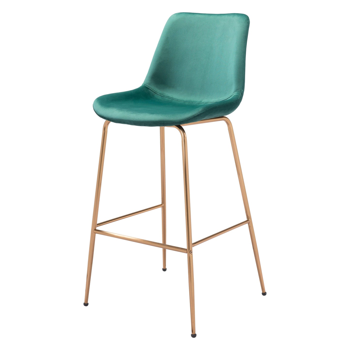 Take a risk and add a touch of luxury to your space with the Tony Bar Chair in Green Gold. Crafted with a sturdy steel frame and a soft velvet seat, this chair brings glamor to any modern or boho chic setting. Perfect for both home and hospitality environments, it supports up to 330 lbs and offers easy assembly. The Tony Bar Chair showcases a maximalist design with an electroplated gold finish on the steel frame and a plush velvet polyester fabric covering the firm seat and back. Ideal for kitchens, bars, or upscale restaurants, it adds sophistication wherever it's placed. Elevate your space with style and confidence!